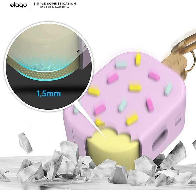 Чехол бренда Elago отлично подойдет для беспроводных наушников Apple Airpods Pro 2. Чехол выполнен в оригинальном дизайне в виде мороженого эскимо. Защитный чехол изготовлен из приятного на ощупь силикона, который плотно облегает кейс беспроводной гарнитуры, при этом сохраняя все его функции. Структура материала не позволит кейсу выскользнуть из рук и отлично защитит его от различных царапин, потертостей и прочих повреждений. Мягкие стенки не придают объем, легко очищаются от загрязнений и обеспечивают комфортную ежедневную эксплуатацию. Благодаря запатентованной технологии, на корпусе аксессуара предусмотрено утоньшение материала до 0.3мм, которое идеально садится на LED-индикатор зарядного кейса, полноценно пропускает свет, но при этом нет отверстия, куда скапливается грязь и пыль, как в любых других чехлах. Для возможности проводной зарядки предусмотрена прорезь для кабеля. Крышка крепится за счет нескользящего покрытия на внутренней поверхности, достаточно просто прижать ее. Модель оснащена алюминиевым к