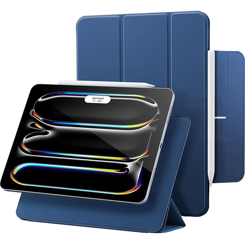 Чехол ESR Rebound Magnetic Case для iPad Pro 11" M4 (2024) Navy Blue крепится к вашему iPad с помощью мощных магнитов, — это не просто защитный аксессуар, а настоящие решение, которое объединяет удобство и прочность. Изготовленный из высококачественных материалов, он обеспечивает надежную защиту от ежедневного износа, позволяя вашему iPad оставаться в безупречном виде на протяжении длительного времени. Кроме того, его подставка, которая складывается в трех различных вариантах, обеспечивает комфортное положение для просмотра видео или написания текстов, добавляя функциональность вашему устройству.