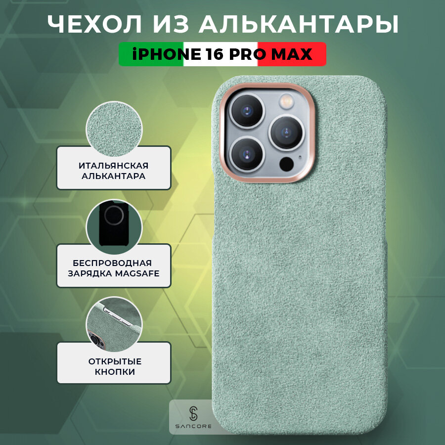Купить Чехол из алькантары (открытый) с MagSafe для iPhone 16 Pro Max, Sancore (Зеленый) / чехол на айфон 16 про макс с доставкой по всей России. Чехол из алькантары (открытый) с MagSafe для iPhone 16 Pro Max, Sancore (Зеленый) / чехол на айфон 16 про макс: сравнение цен, характеристики, фото, актуальное наличие и цены.