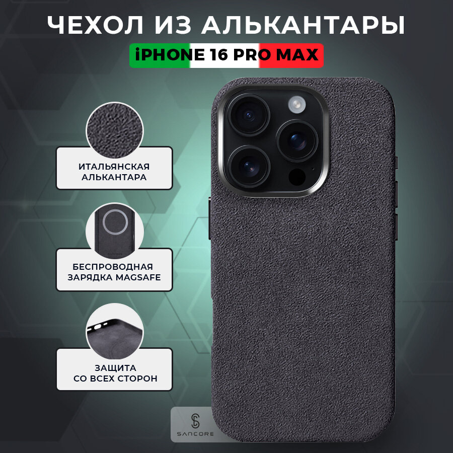 Купить Чехол из алькантары с MagSafe для iPhone 16 Pro Max, Sancore (Черный) / чехол на айфон 16 про макс с доставкой по всей России. Чехол из алькантары с MagSafe для iPhone 16 Pro Max, Sancore (Черный) / чехол на айфон 16 про макс: сравнение цен, характеристики, фото, актуальное наличие и цены.