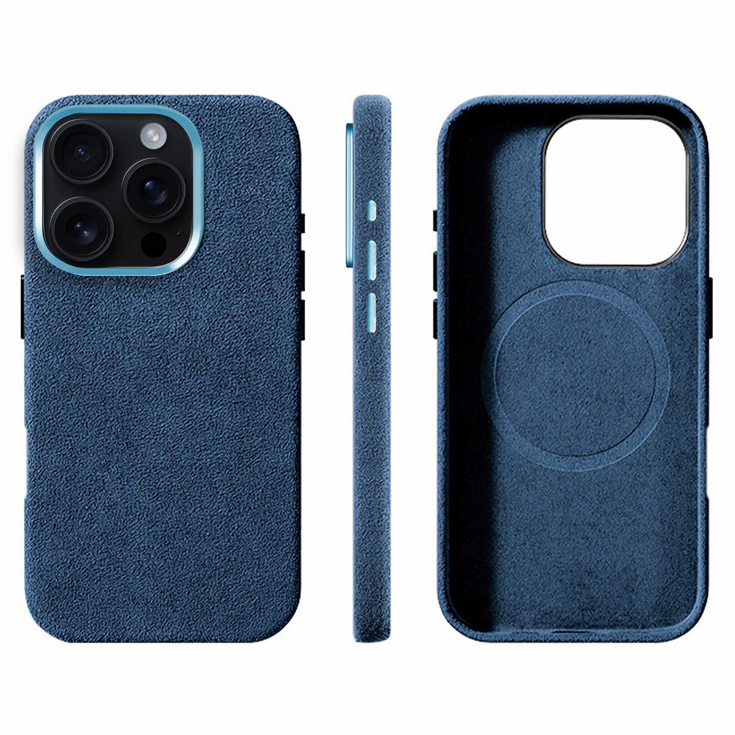 Чехол из алькантары с MagSafe для iPhone 16 Pro Max в цвете синего оттенка от Sancore - это стильный аксессуар, который обеспечивает надежную защиту вашего устройства. Этот чехол на iPhone 16 Pro Max выполнен из высококачественной алькантары, что придает ему роскошный внешний вид и приятную на ощупь текстуру.