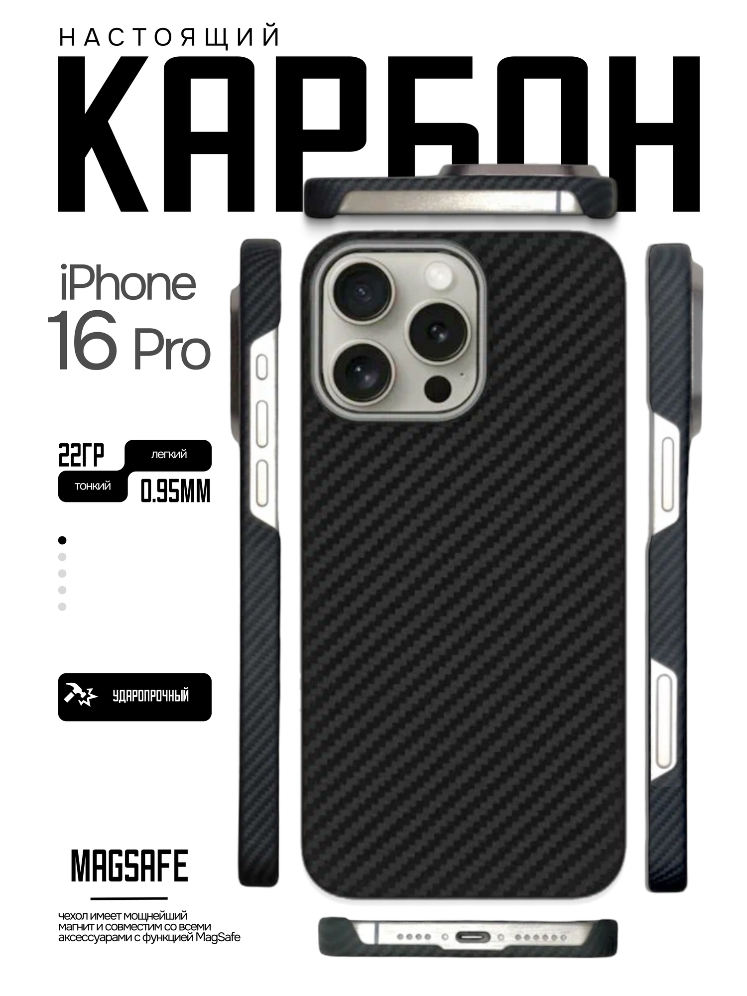 Чехол карбоновый для iPhone 16 Pro (с поддержкой беспроводной зарядки), сверхпрочный, лёгкий: сравнение цен, характеристики, фото, актуальное наличие и цены.