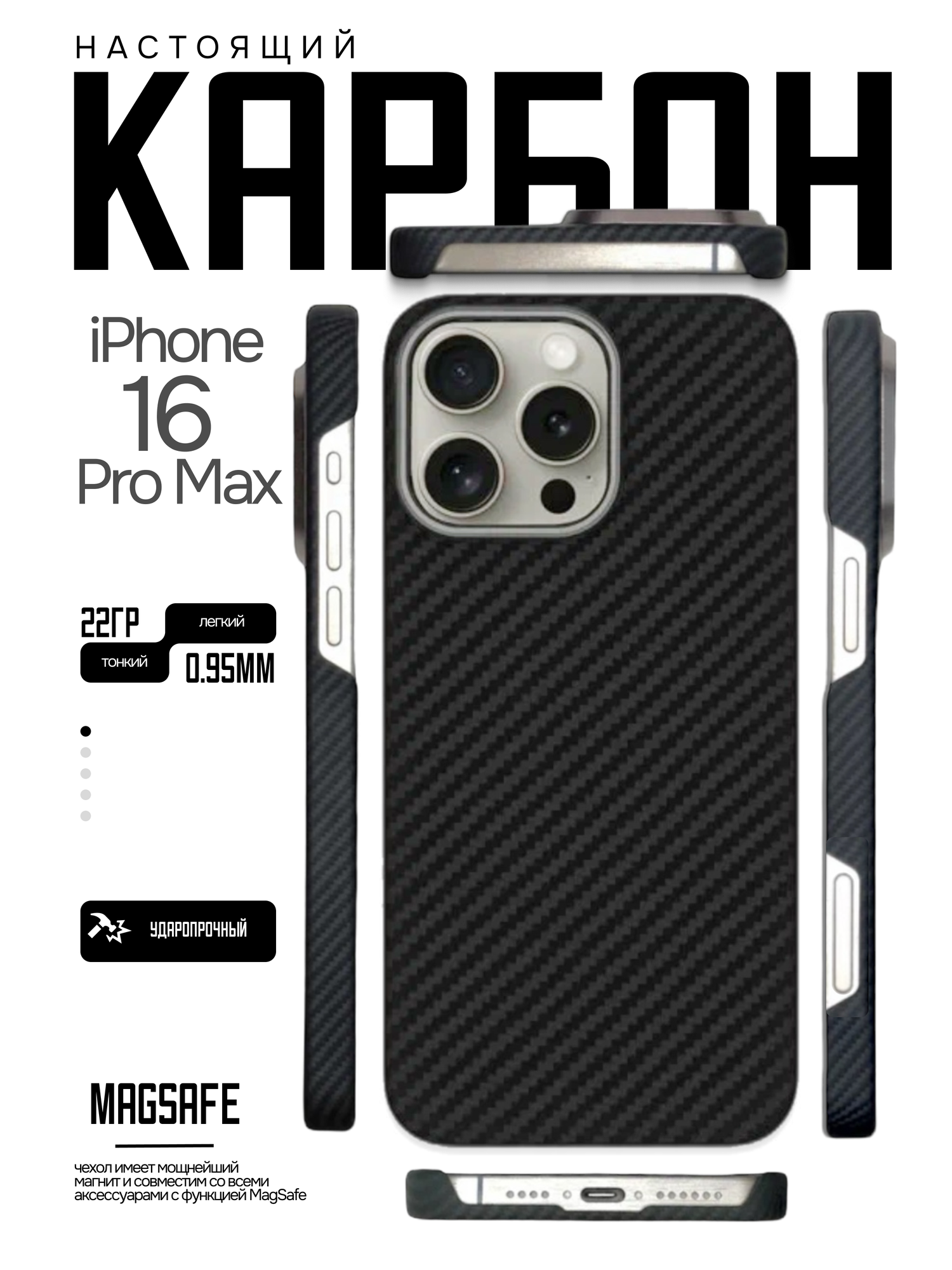 Чехол карбоновый для iPhone 16 Pro Max(с поддержкой беспроводной зарядки), сверхпрочный, лёгкий: сравнение цен, характеристики, фото, актуальное наличие и цены.