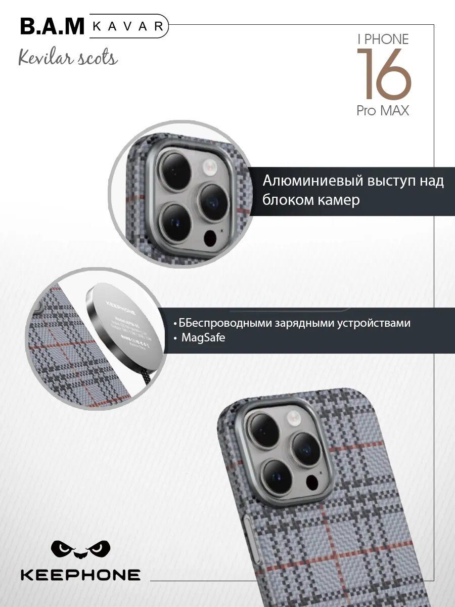 Купить Чехол Keephone «Kevlar», титановый, для iPhone 16 Pro Max, защита камеры, soft touch с доставкой по всей России.
