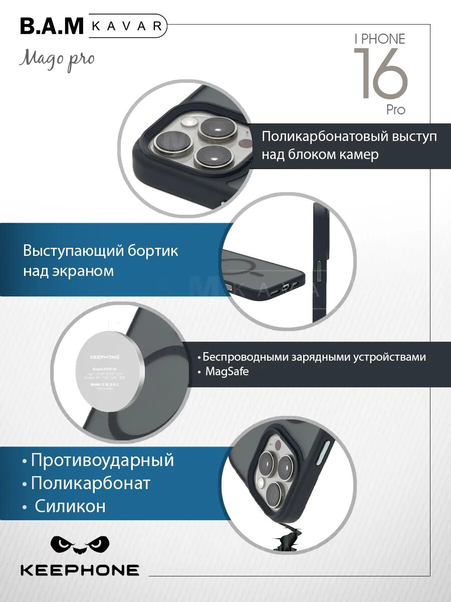 Чехол Keephone Mago Pro для iPhone 16 Pro, противоударный, MagSafe, черный: сравнение цен, характеристики, фото, актуальное наличие и цены.