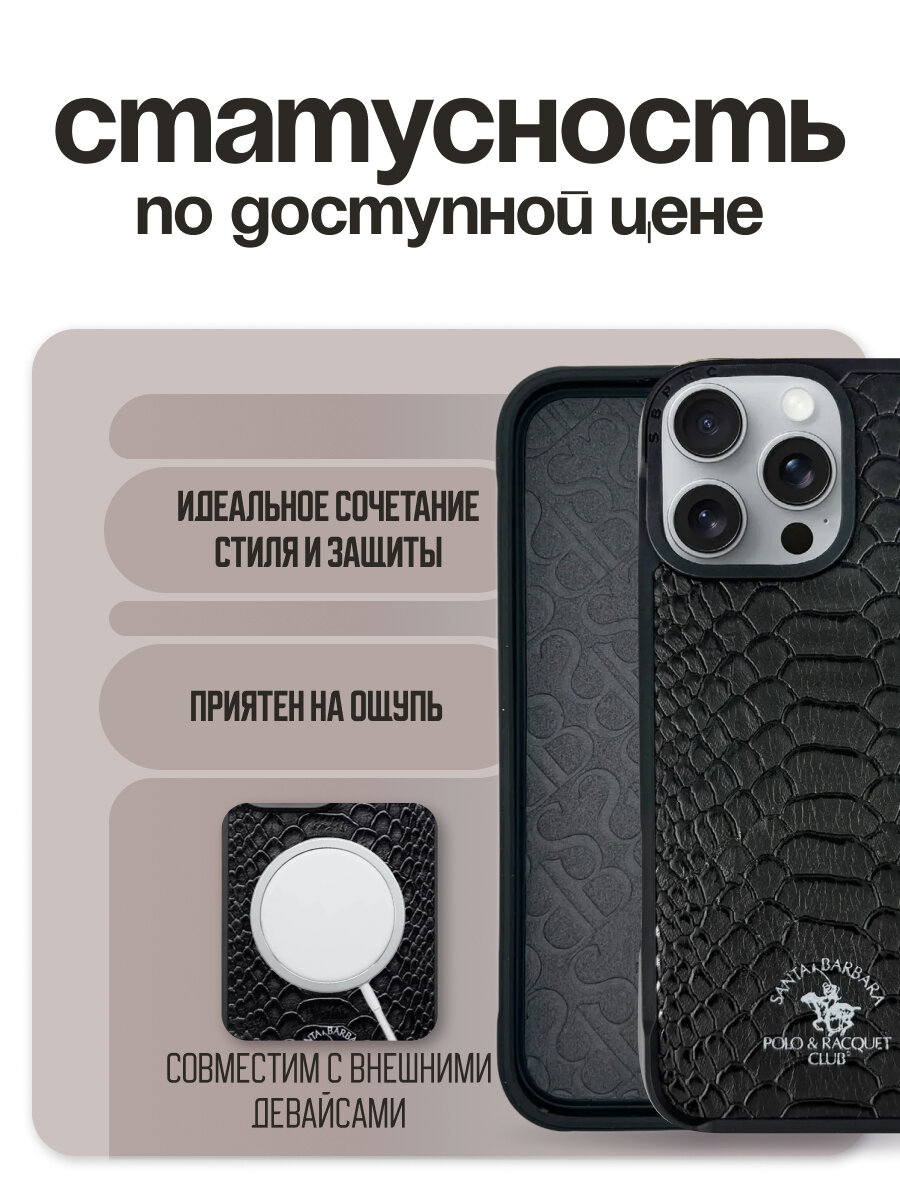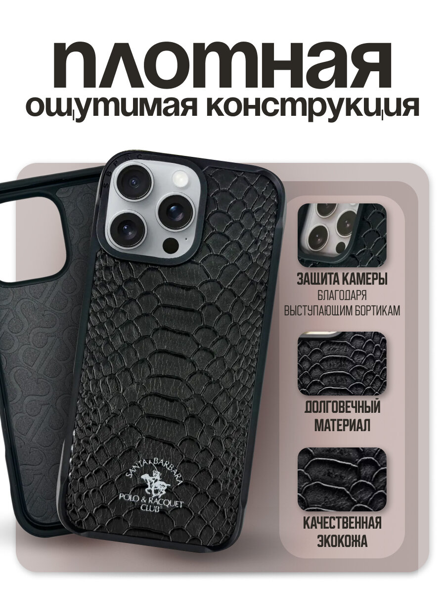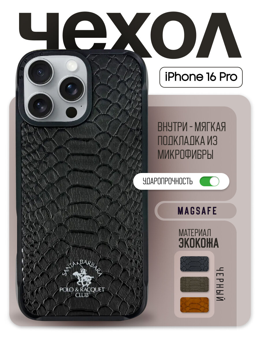 Чехол на Apple iPhone 16 Pro Knight с поддержкой MagSafe, черный подчеркнет роскошь вашего iPhone. Изготовленный из высококачественной искусственной кожи, содержащий встроенное магнитное кольцо, этот чехол сочетает в себе элегантность и надежную защиту. Прекрасное сочетание классического дизайна и современных технологий. Противоскользящее покрытие гарантирует, что смартфон ни за что не выскользнет из рук! Чехол на смартфон плотно облегает iPhone, повторяя все его плавные изгибы и практически не прибавляет ему объема. Благодаря специальным вырезам у вас будет полный доступ ко всем функциональным элементам смартфона. Это позволит вам с легкостью подключать гарнитуру, заряжать и синхронизировать. Santa Barbara Polo — это чехол на 16 pro, который не только успешно справится с непредвиденными проблемами, но и продемонстрирует статус и безупречный вкус владельца! чехол на айфон 16 про идеально подходит на любой праздник для женщин, мужчин, девушек, парней, мальчиков, девочек, для мужа, для жены, для любимого, для любимой.