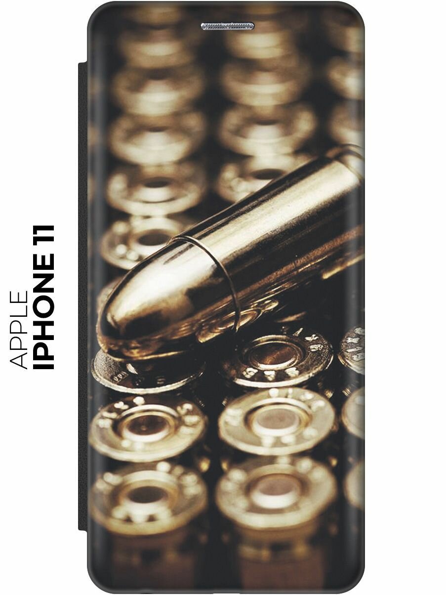 Чехол-книжка на Apple iPhone 11 / Эпл Айфон 11 с рисунком "9 мм" черный