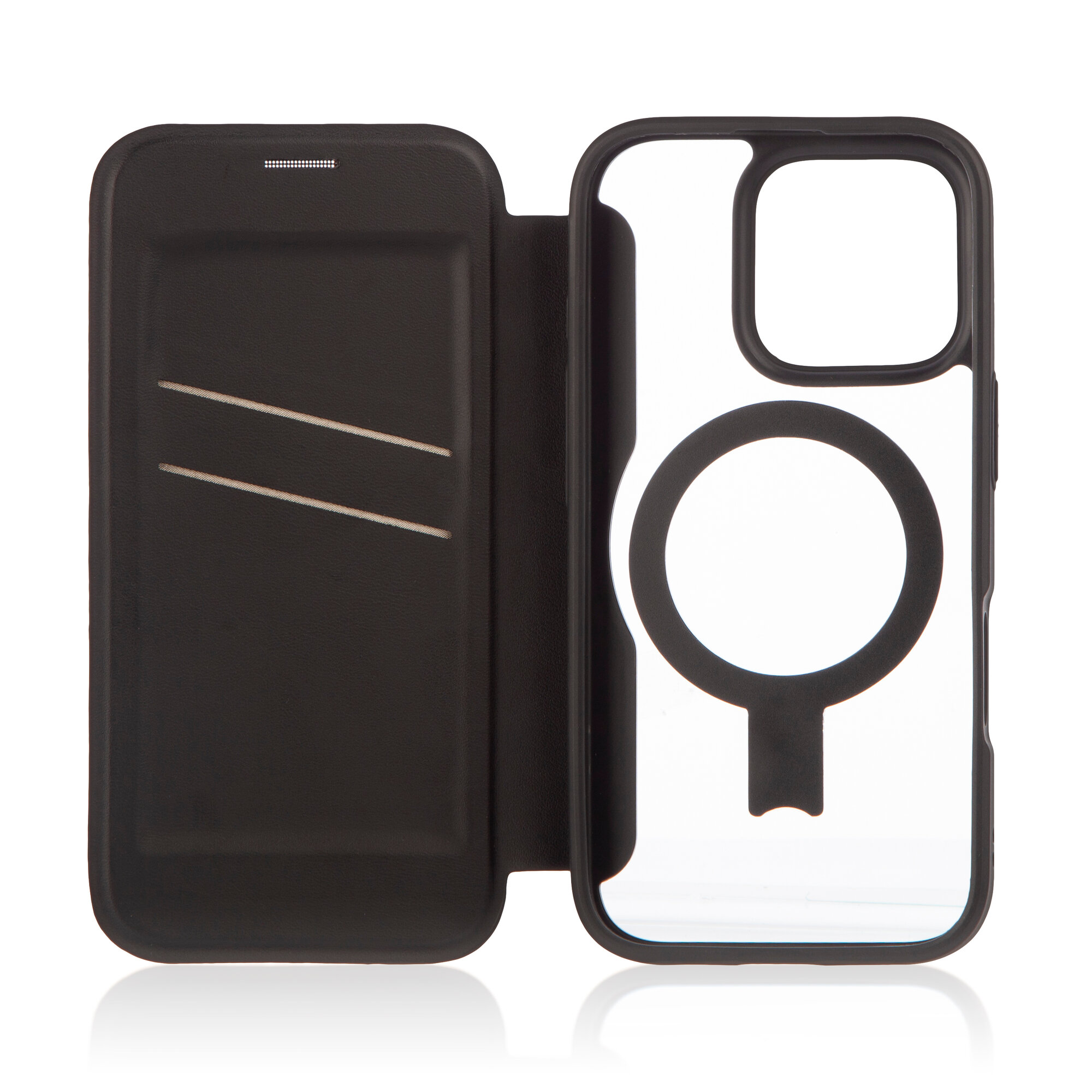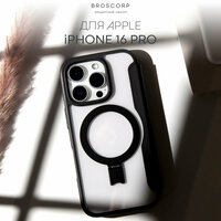 Купить Чехол-книжка Broscorp на Apple iPhone 16 Pro (Айфон 16 Про), премиальный с Magsafe, черный с доставкой по всей России.