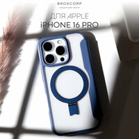 Купить Чехол-книжка Broscorp на Apple iPhone 16 Pro (Айфон 16 Про), премиальный с Magsafeсиний с доставкой по всей России.