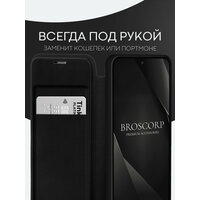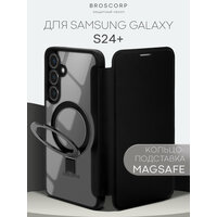 Купить Чехол-книжка BROSCORP на Samsung Galaxy S24+ (Самсунг Галакси С24+), премиальный с магнитным кольцом, черный с доставкой по всей России.