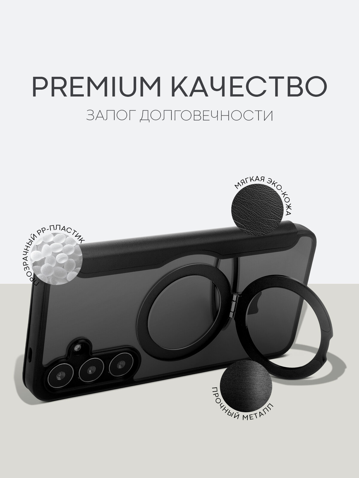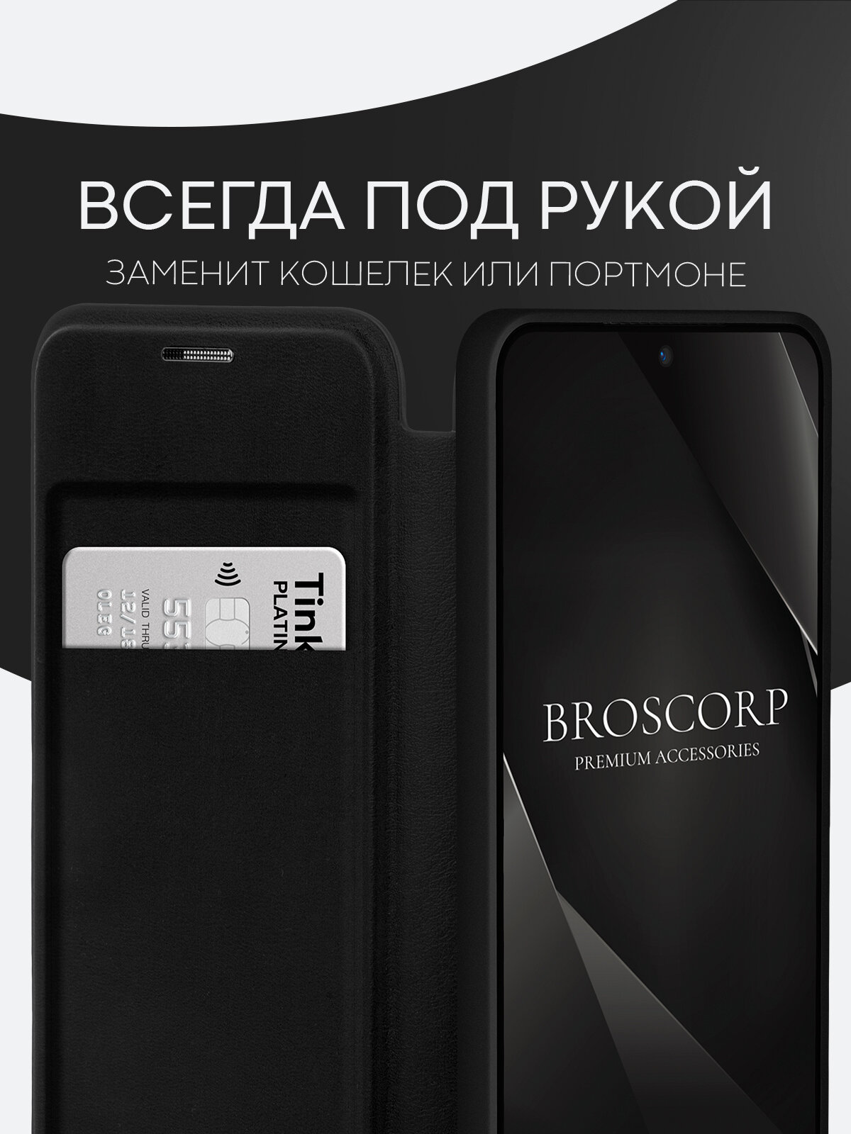Чехол-книжка BROSCORP на Samsung Galaxy S24+ (Самсунг Галакси С24+), премиальный с магнитным кольцом, черный: сравнение цен, характеристики, фото, актуальное наличие и цены.