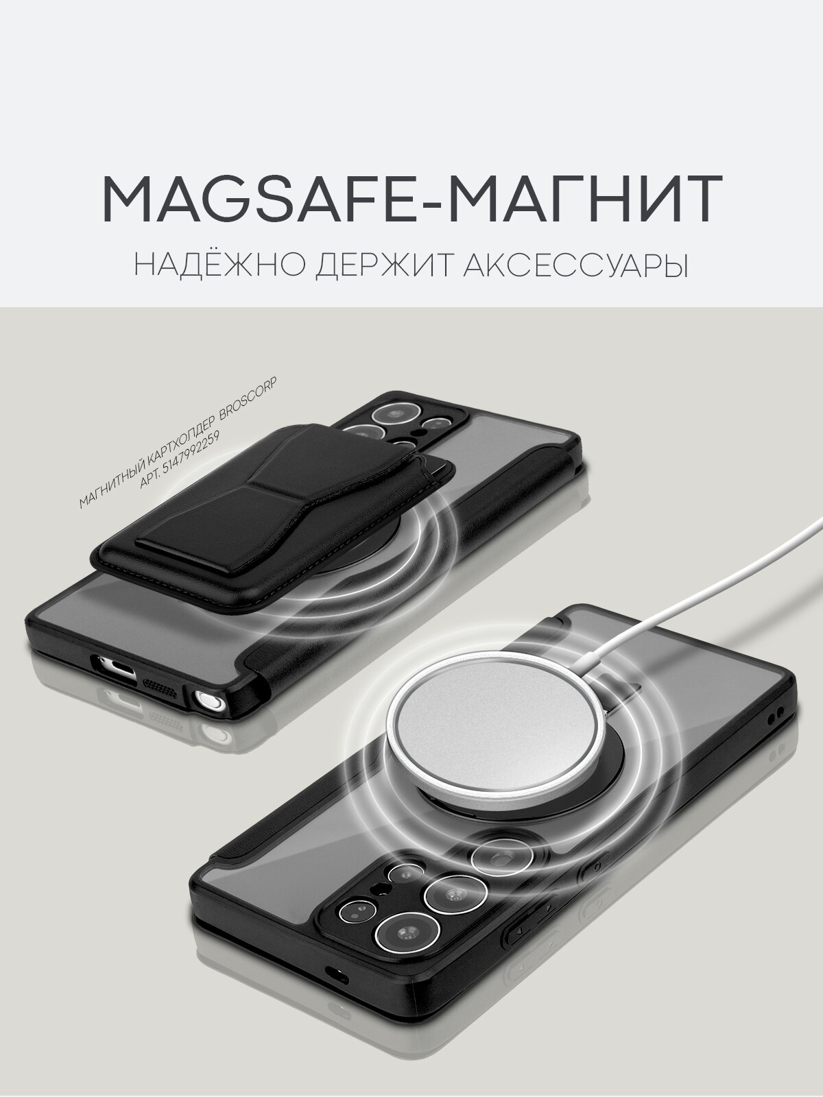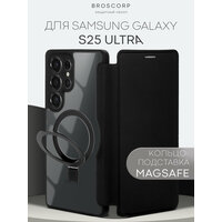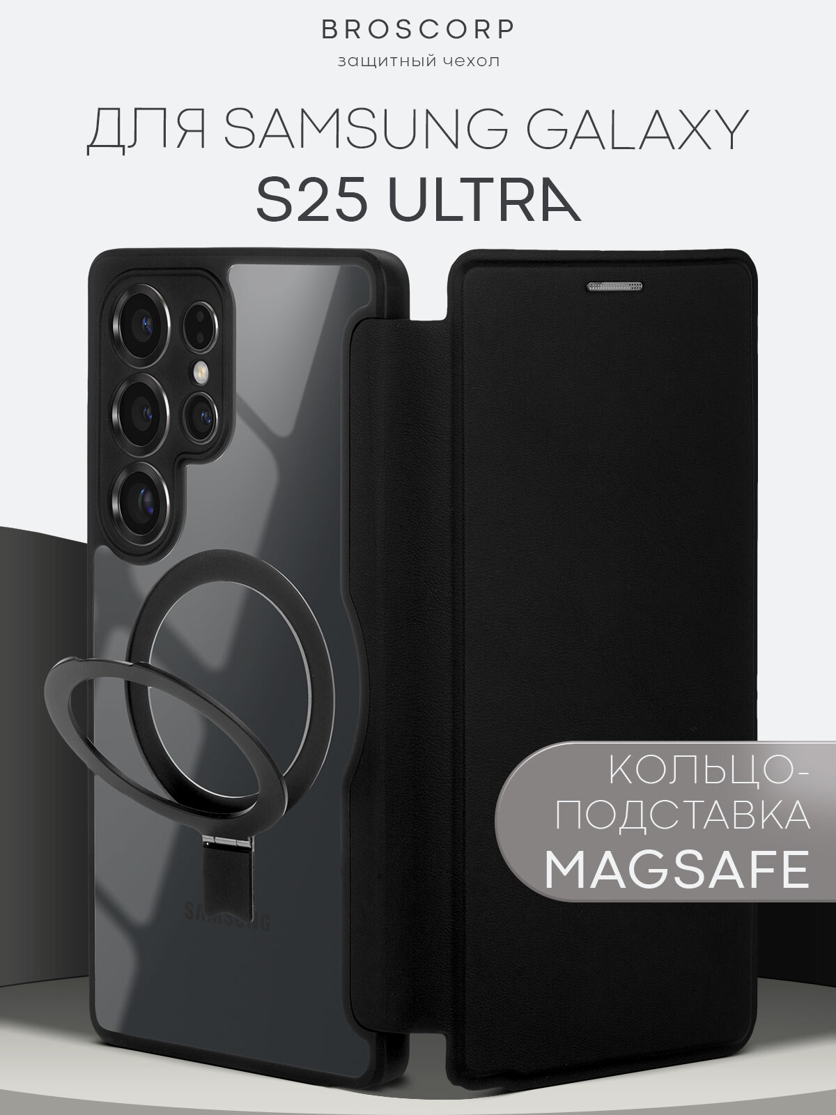Купить Чехол-книжка Broscorp на Samsung Galaxy S25 Ultra (Самсунг Галакси С25 Ультра), премиальный с Magsafe, черный с доставкой по всей России.