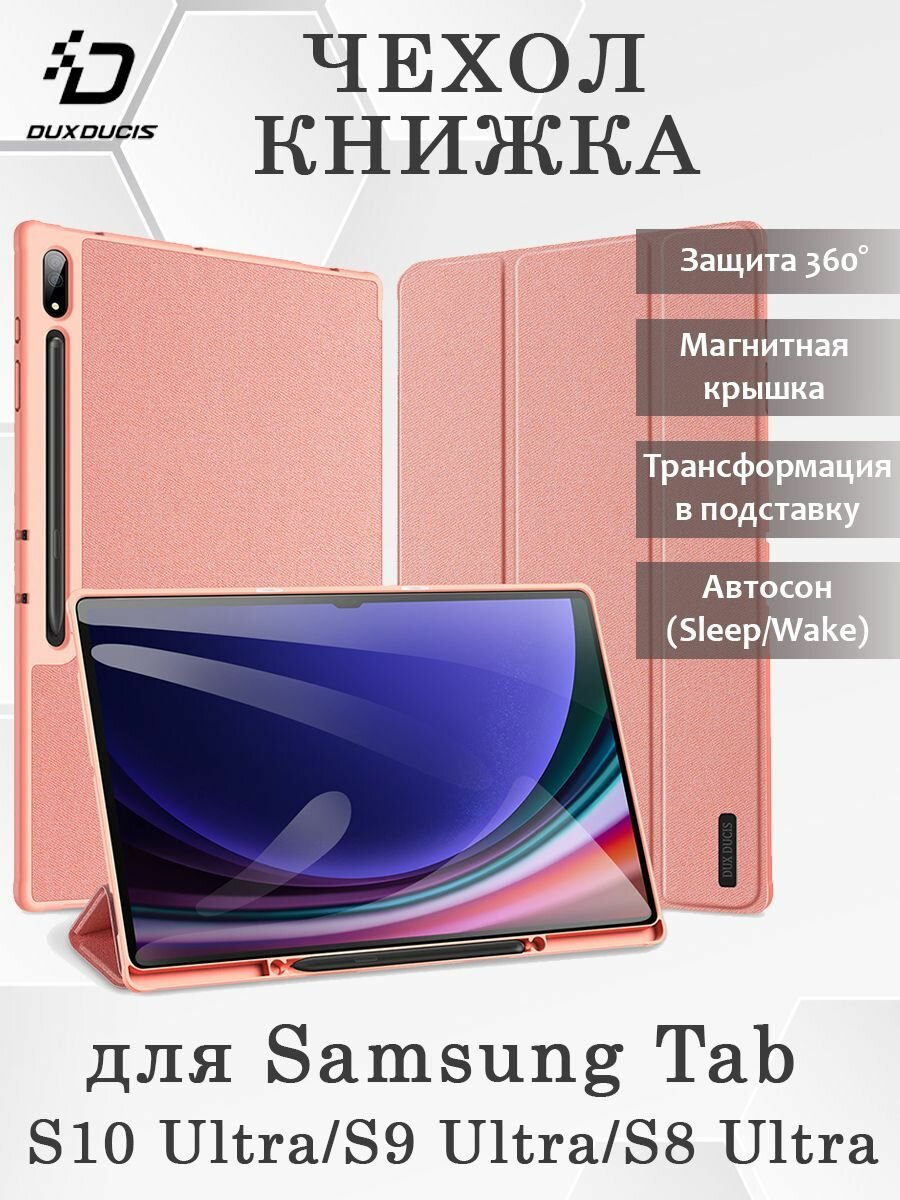 Чехол книжка Dux Ducis для Samsung Tab S10 Ultra, Domo series, розовый: сравнение цен, характеристики, фото, актуальное наличие и цены.