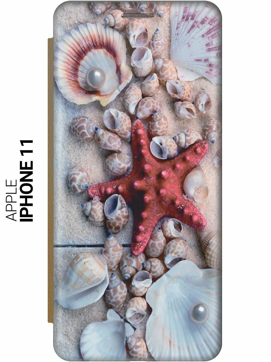 Чехол-книжка на Apple iPhone 11 / Эпл Айфон 11 с рисунком «Красная морская звезда» золотистый: сравнение цен, характеристики, фото, актуальное наличие и цены.