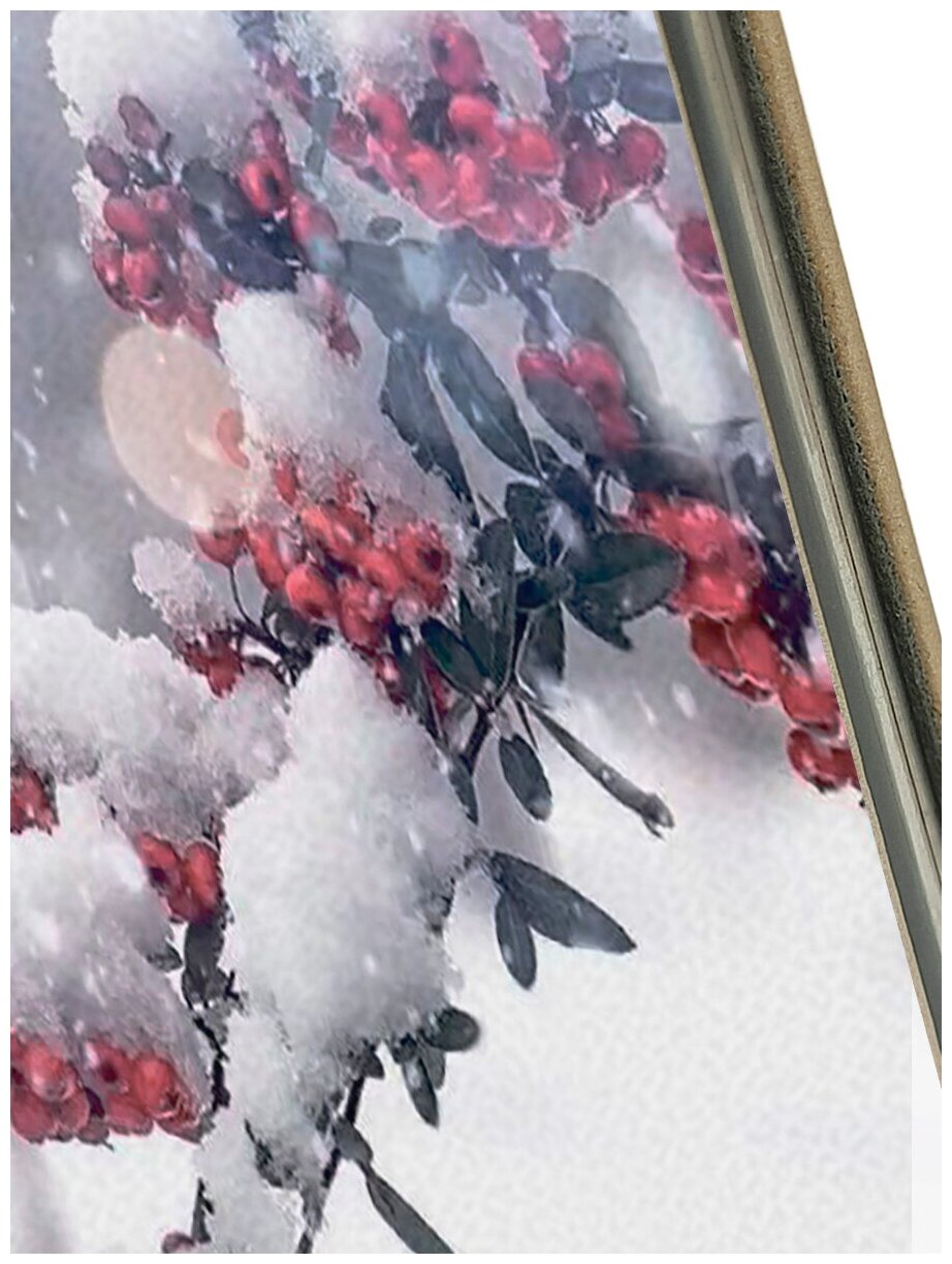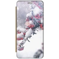 Купить Чехол-книжка на Apple iPhone 12 / 12 Pro / Эпл Айфон 12 / 12 Про с рисунком «Заснеженная рябина» золотистый с доставкой по всей России.