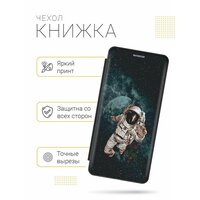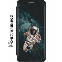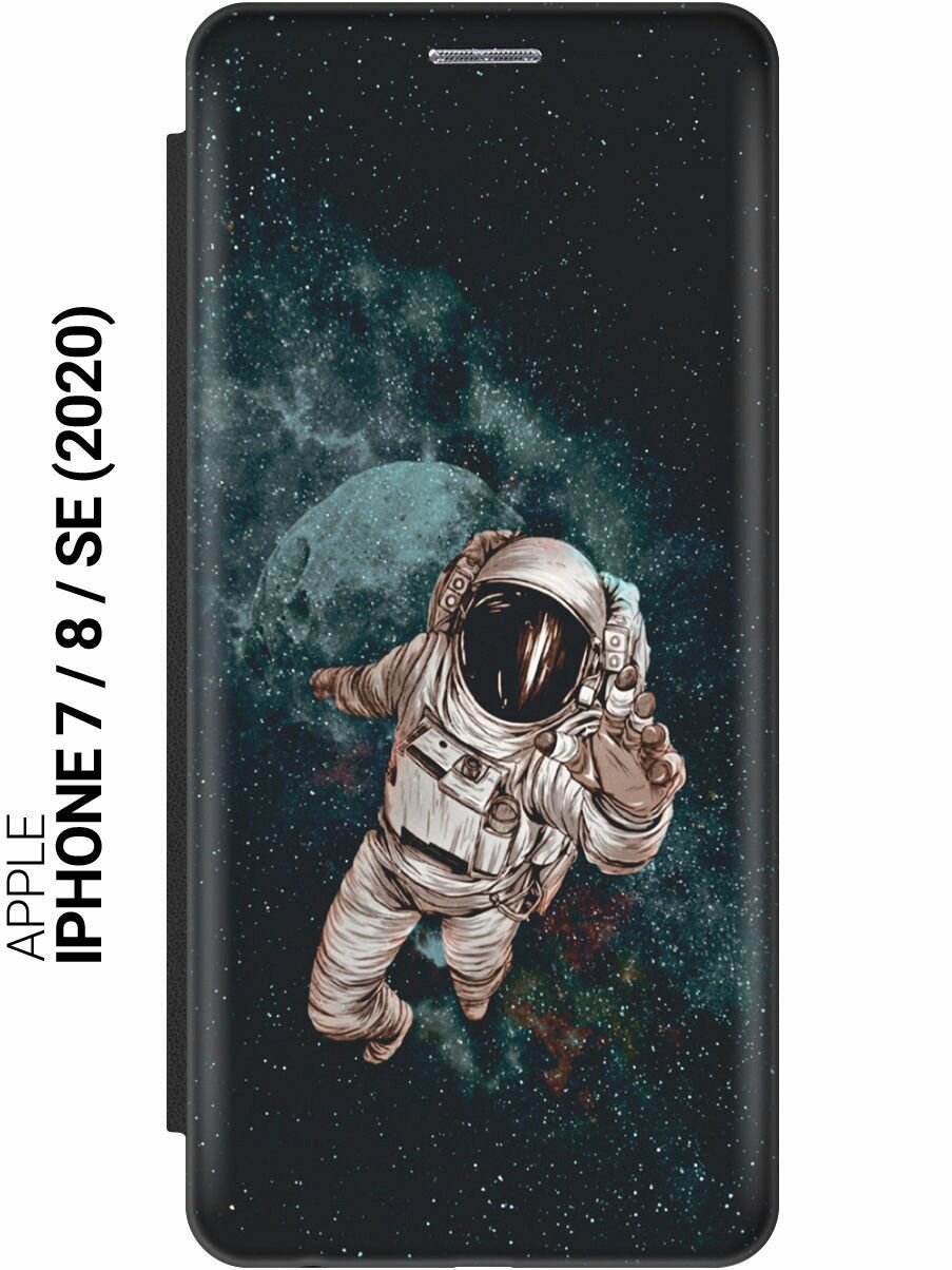Купить Чехол-книжка на Apple iPhone SE (2022) / SE (2020) / 8 / 7 / Эпл Айфон СЕ 2022 / СЕ 2020 / 8 / 7 с рисунком «Космонавт» черный с доставкой по всей России.