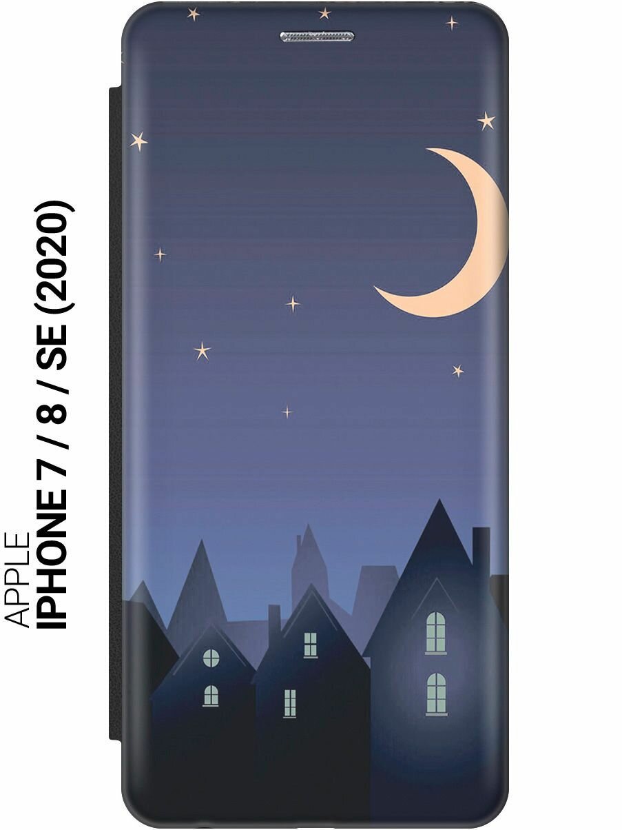Купить Чехол-книжка на Apple iPhone SE (2022) / SE (2020) / 8 / 7 / Эпл Айфон СЕ 2022 / СЕ 2020 / 8 / 7 с рисунком «Месяц над городом» черный с доставкой по всей России. Чехол-книжка на Apple iPhone SE (2022) / SE (2020) / 8 / 7 / Эпл Айфон СЕ 2022 / СЕ 2020 / 8 / 7 с рисунком «Месяц над городом» черный: сравнение цен, характеристики, фото, актуальное наличие и цены.