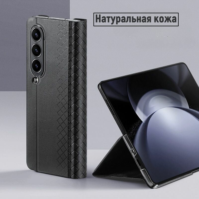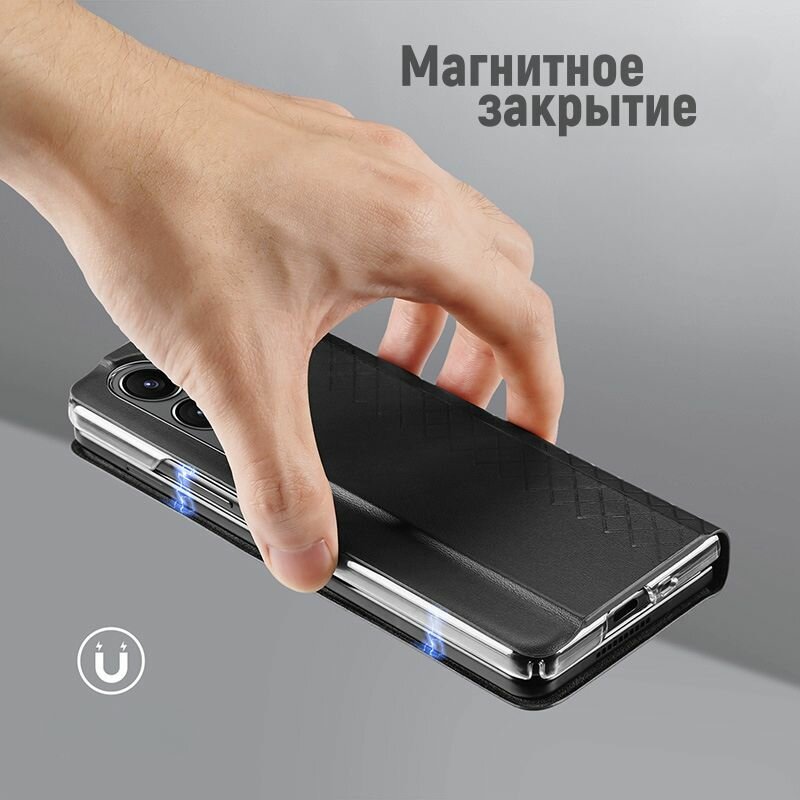 Чехол-книжка S&T StatusBlack подходит для Samsung Galaxy Z Fold 4 отделка черная кожа и замша, с визитницей, магнитное закрытие, с подножкой, статусный подарок для мужа отца сына матери сестры мамы