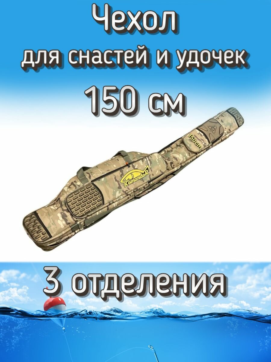 Чехол Komandor для снастей, удочек с 3 отделениями 150 см, пустынный (камуфляж): сравнение цен, характеристики, фото, актуальное наличие и цены.