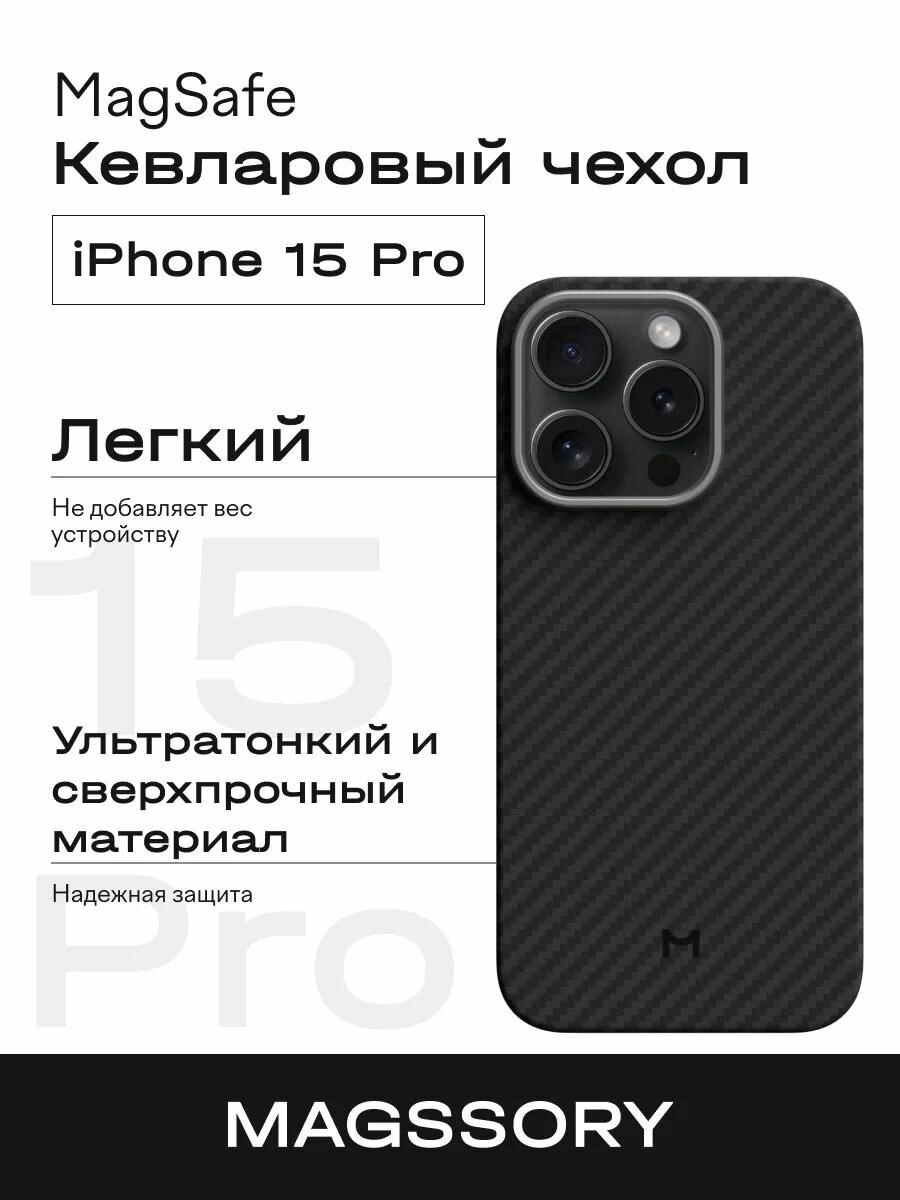 Добро пожаловать в мир стильных и защитных чехлов Magssory! Представляем противоударный чехол Magssory для iPhone 15 Pro, который сочетает в себе прочность, функциональность и элегантный дизайн. Этот чехол изготовлен из прочного кевлара (арамида), что делает его надежной защитой для вашего телефона от повреждений, пыли и случайных ударов. При этом вес данного аксессуара минимален, что делает его максимально незаметным в процессе использования. Наш чехол является надежным аксессуаром для Вашего гаджета, так как он оснащен магнитами, которые обеспечивают прочное и надежное крепление к смартфону. Они позволяют легко установить и снять чехол, а также обеспечивают безопасное хранение вашего устройства. Вы сможете прикреплять различные магнитные аксессуары и использовать функцию беспроводной зарядки, не снимая чехол. Черный цвет этого чехла делает его универсальным со своим классическим и элегантным видом. Он подчеркивает его стильный дизайн и делает ваше устройство привлекательным визуально. Не беспокойтесь о повреждениях вашего iPhone 15 Pro с противоударным чехлом Magssory, Получите не только защиту, но и стильный аксессуар для вашего телефона. Magssory является участником проекта «Сделано в Москве», что подтверждает высокое качество нашей продукции