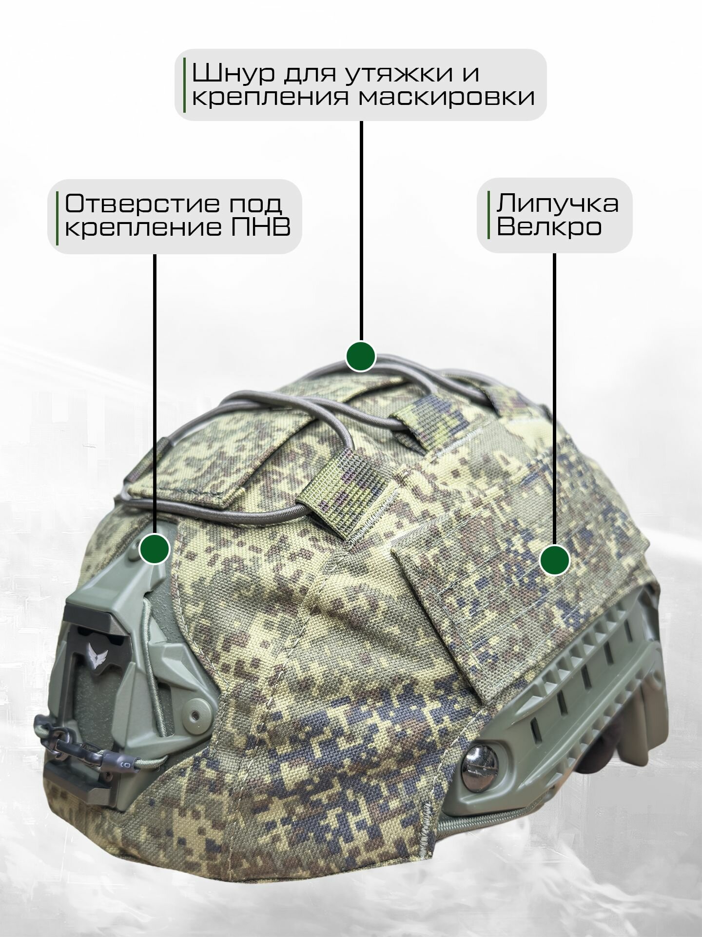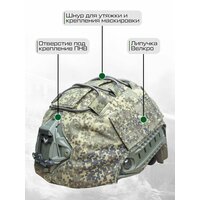 Чехол садится точно по шлему и плотно облегает его, есть отверстие под крепление ПНВ, расположенное на шлеме.