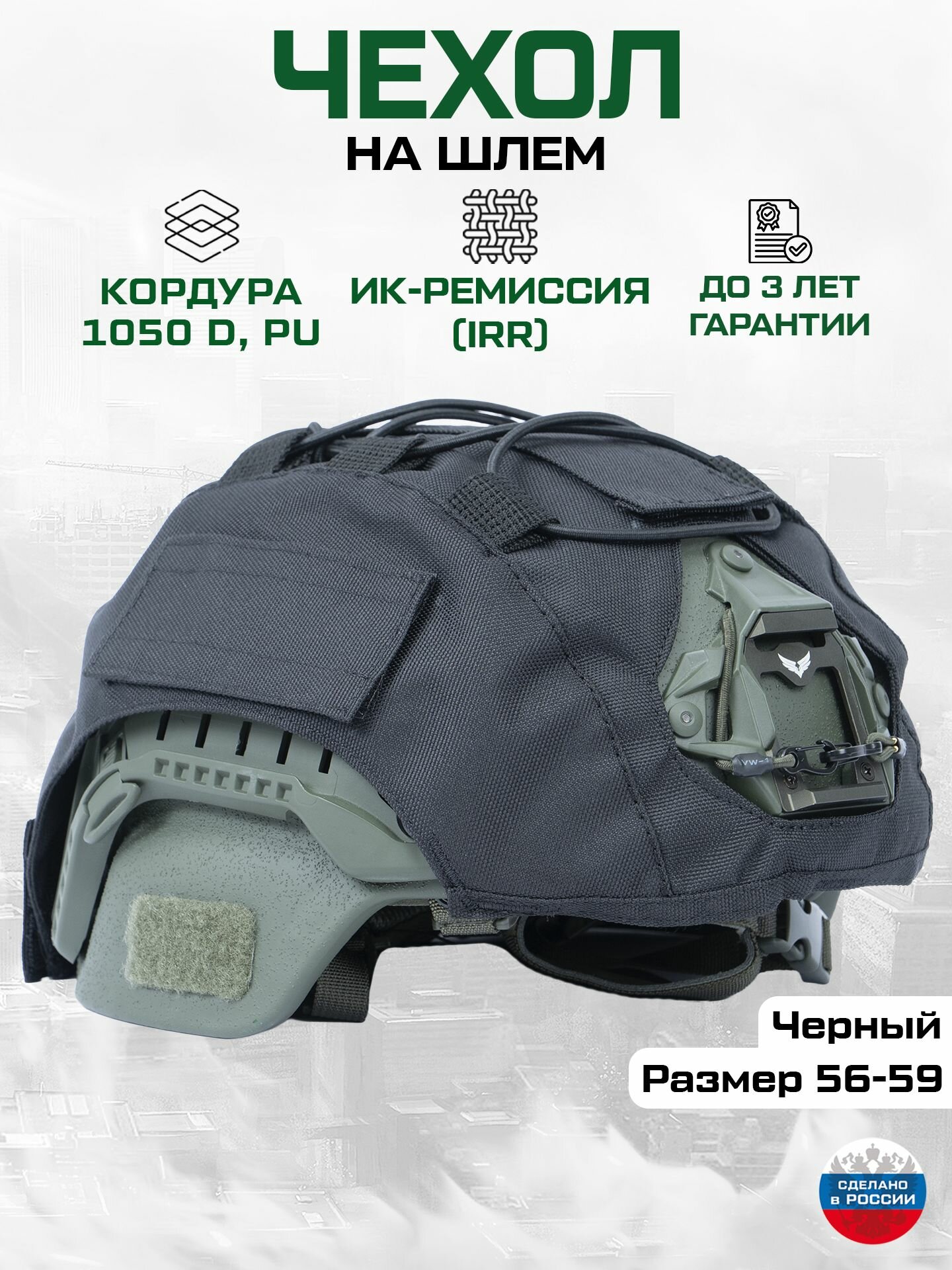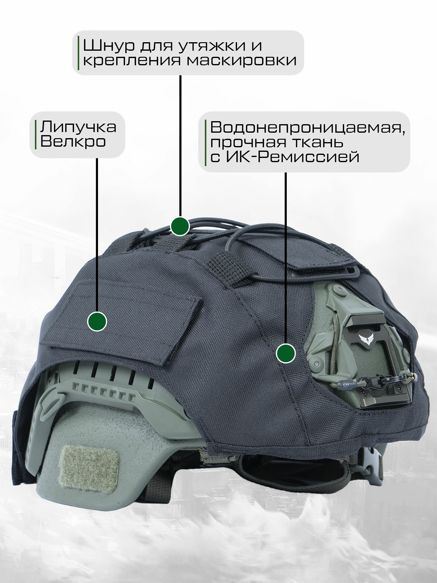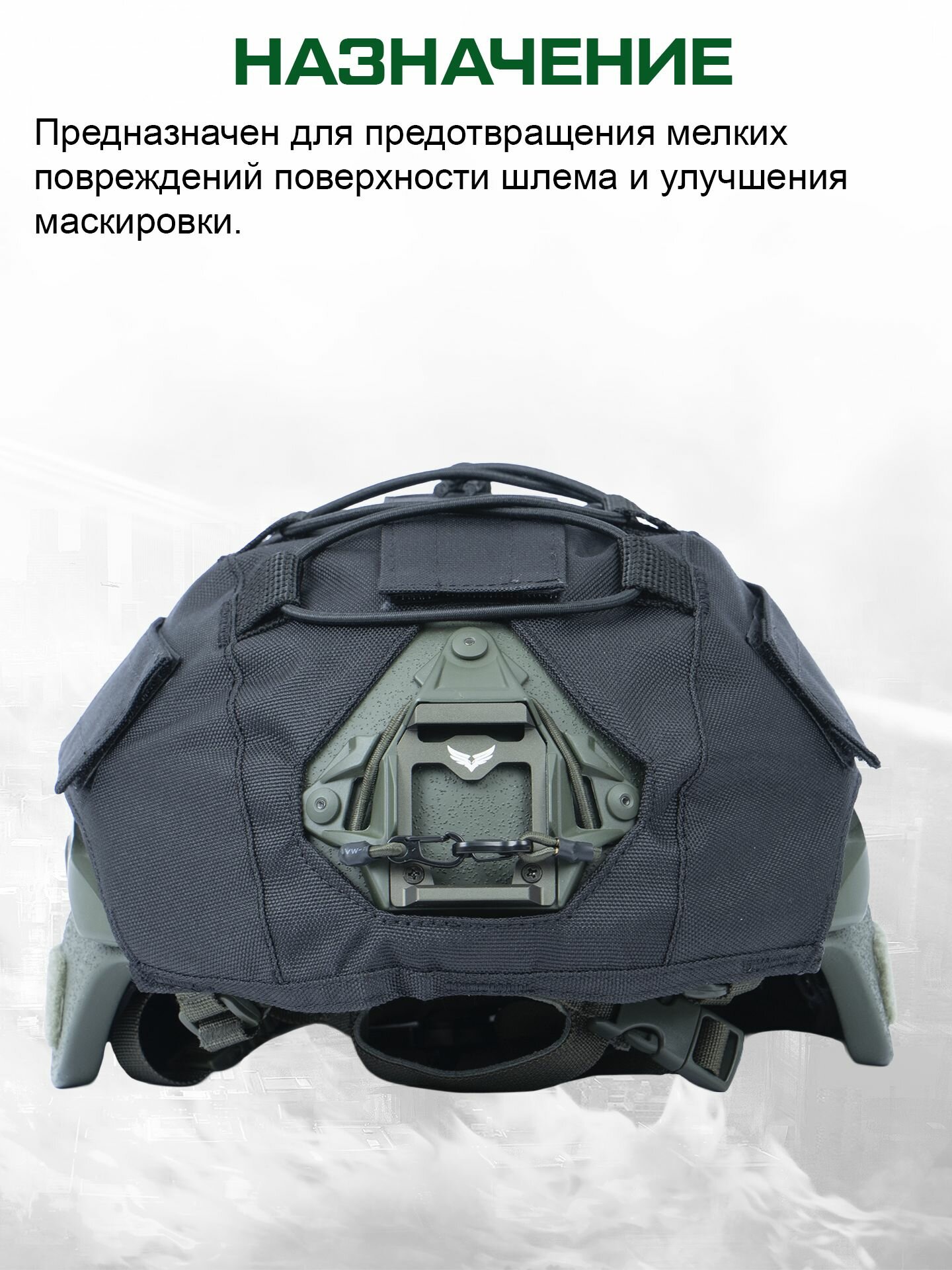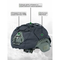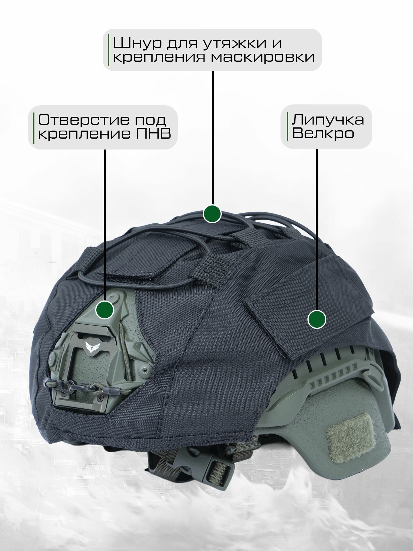 Чехол садится точно по шлему и плотно облегает его, есть отверстие под крепление ПНВ, расположенное на шлеме.