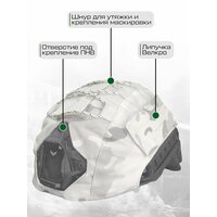 Чехол садится точно по шлему и плотно облегает его, есть отверстие под крепление ПНВ, расположенное на шлеме.