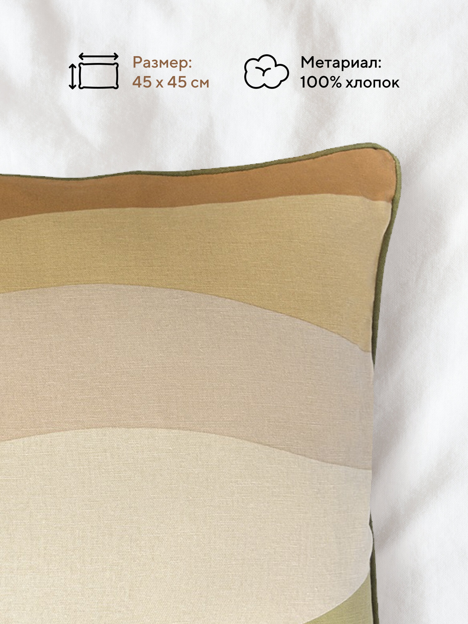 Чехол на подушку из хлопка с принтом Rice plantation из коллекции Terra станет необычным акцентом в интерьере гостиной или спальни. В основе принта плавные линии золотых рисовых полей Вьетнама, видимые с высоты птичьего полета. Натуральный хлопок и природная цветовая палитра – идеальное решение для тех, кто любит стирать границы между внешним и внутренним пространствами. Чехол на подушку выполнен из прочного мягкого хлопка, он не деформируется, не линяет, и на нем не образуются катышки.