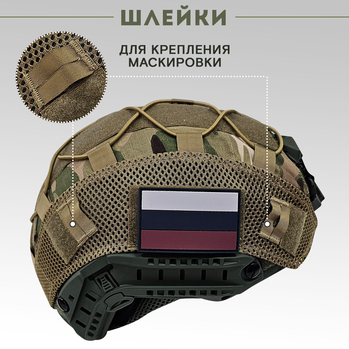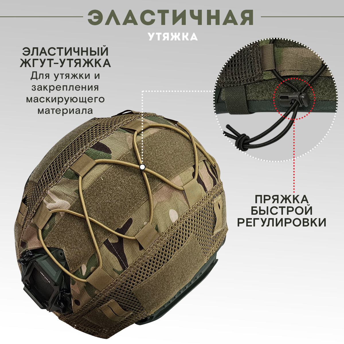 Чехол на тактический шлем предназначен для маскировки за счет расцветки цвета Мультикам