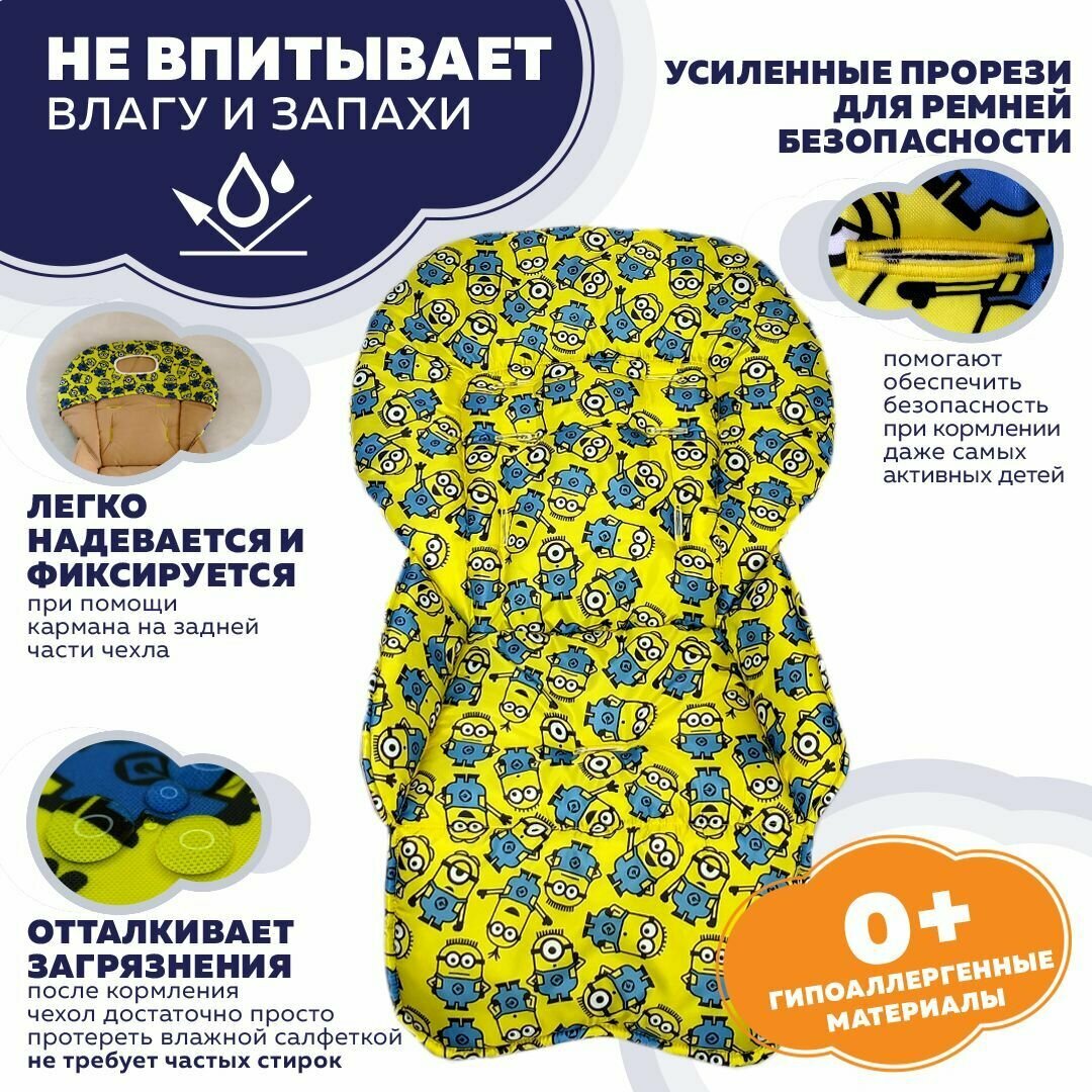 Купить Чехол/ накидка на детский стульчик для кормления Happy Baby William Classic/ Миньоны с доставкой по всей России.