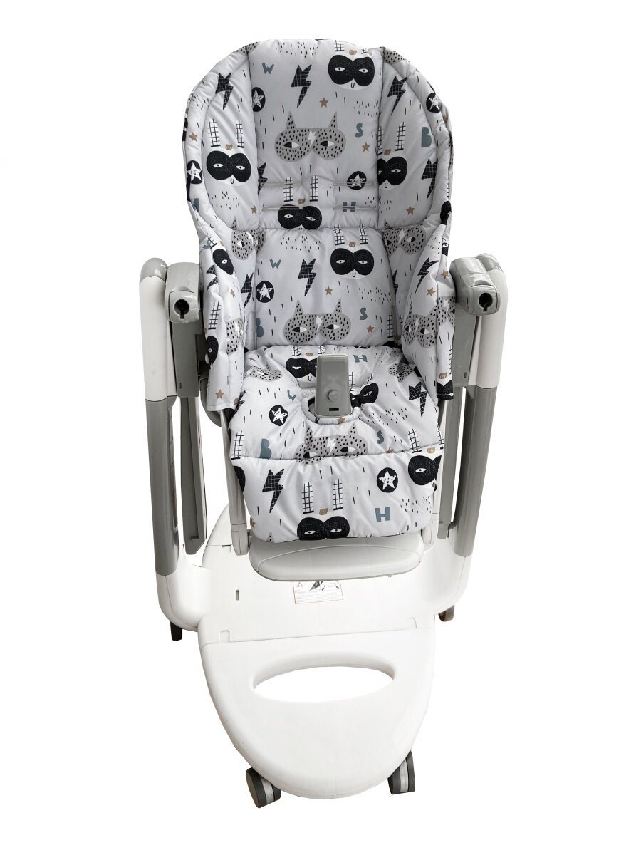 Чехол идеально повторяет форму сидения стульчика Tatamia (Татамия). Подходит и на другие модели стульчиков (см. параметры). Легко надевается и снимается, есть прорези под ремни безопасности. Дышащие материалы. Чехол из водонепроницаемой ткани, двусторонний: с одной стороны принт, с другой стороны чехол однотонный- серого цвета. Наполнитель гипоаллергенный. Не теряет форму. Не трескается, в отличии от кож зама! Можно использовать как основной, также поверх оригинального. Возможна стирка в стиральной машине при деликатном режиме или просто протереть загрязнение влажной салфеткой. Расположение рисунка на ткани может не значительно отличаться.