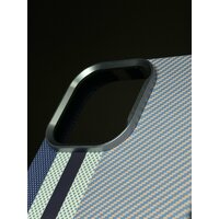 Чехол-накладка для Айфон 16 Про Макс с МагСейф из Кевлара / чехол на iPhone 16 Pro Max с MagSafe Kevlar LUXO Life+ / MOSBROS, карбоновый, Оранжево-синий, c полосой: сравнение цен, характеристики, фото, актуальное наличие и цены.