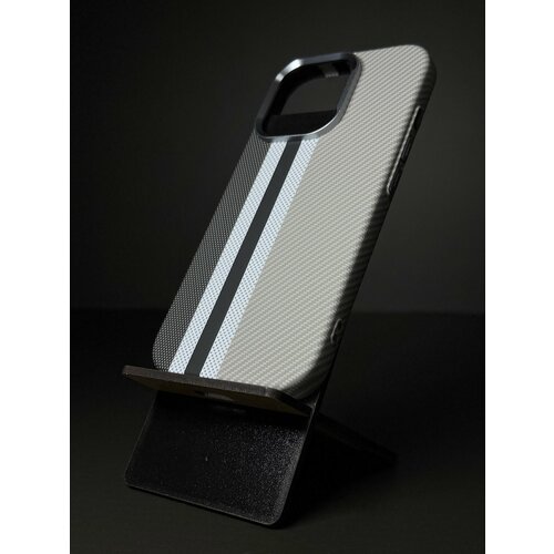 Чехол-накладка для Айфон 16 Про с МагСейф из Кевлара / чехол на iPhone 16 Pro с MagSafe Kevlar LUXO Life+ / MOSBROS, серо-черный, с полосой, карбоновый