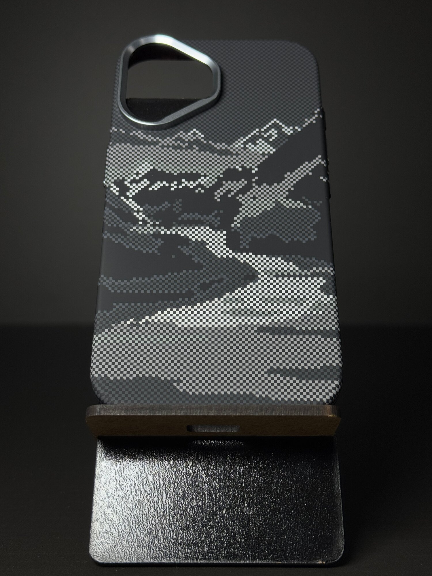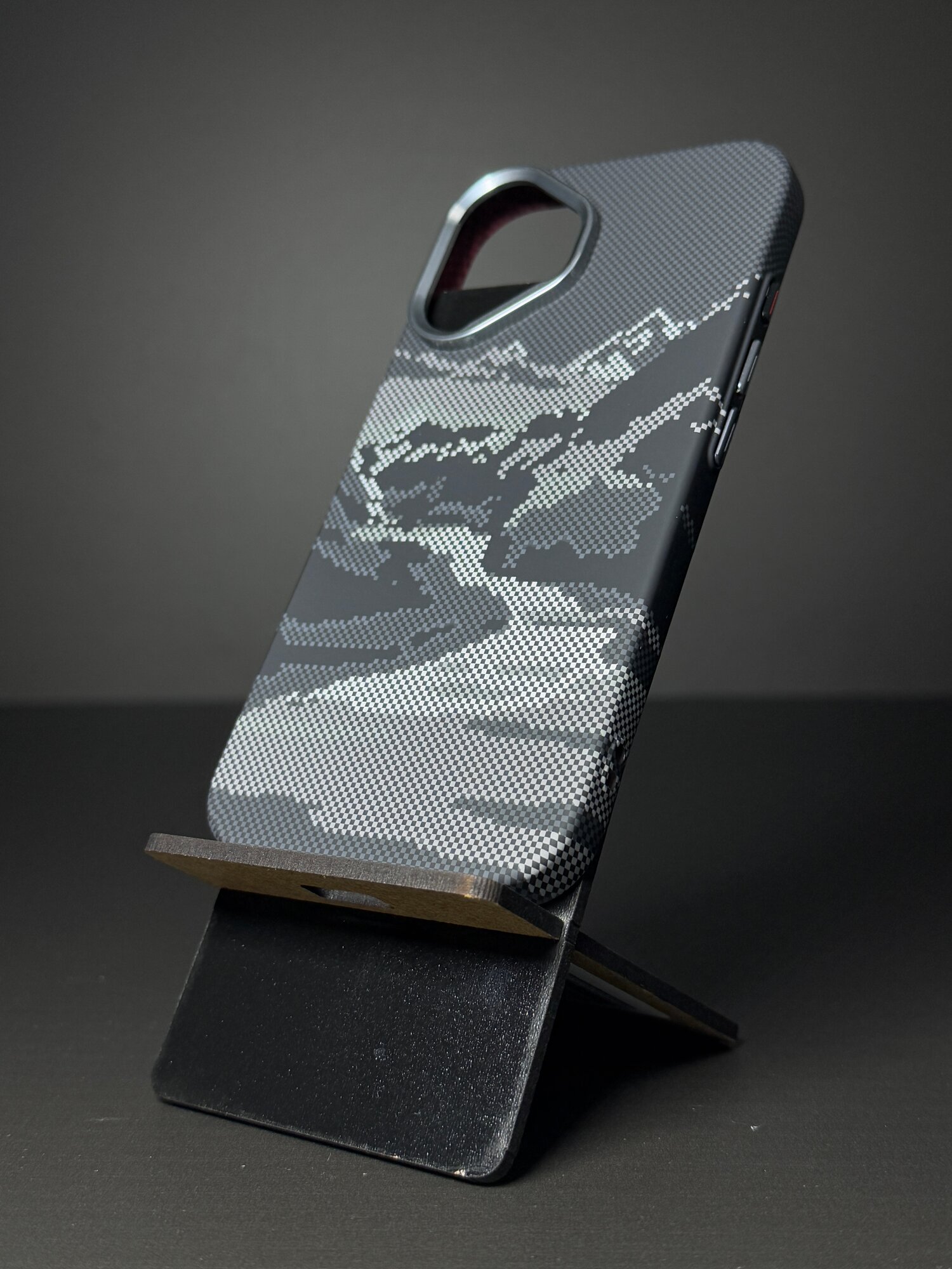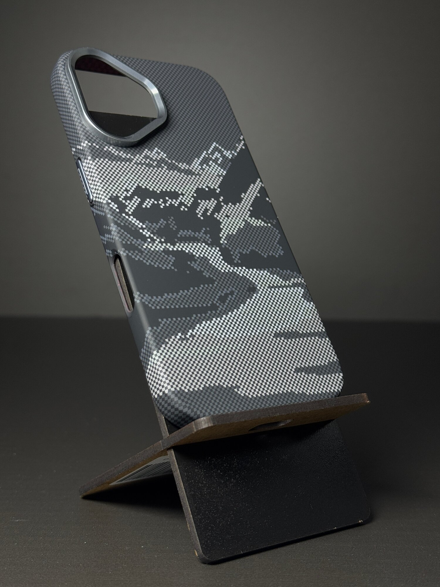 Купить Чехол-накладка для Айфон 16 с МагСейф из Кевлара / чехол на iPhone 16 с MagSafe Kevlar LUXO Life+ / MOSBROS, Черные горы, карбоновый с доставкой по всей России.