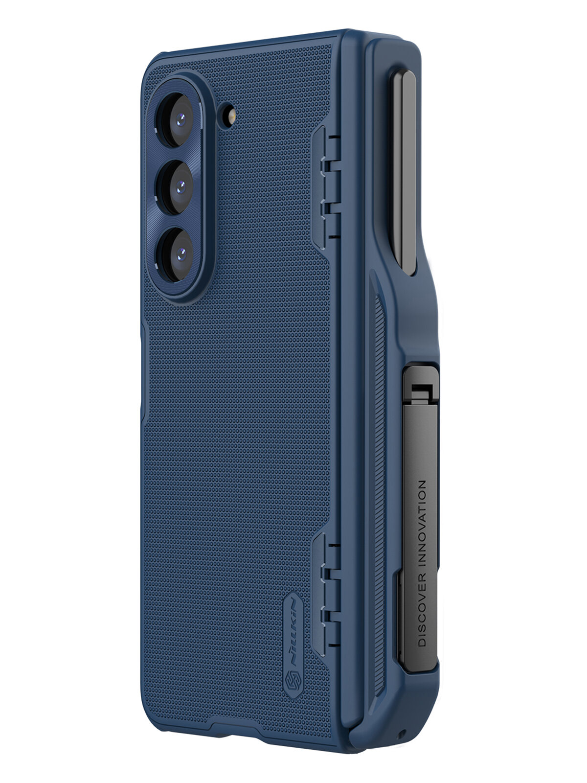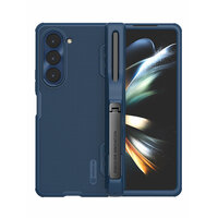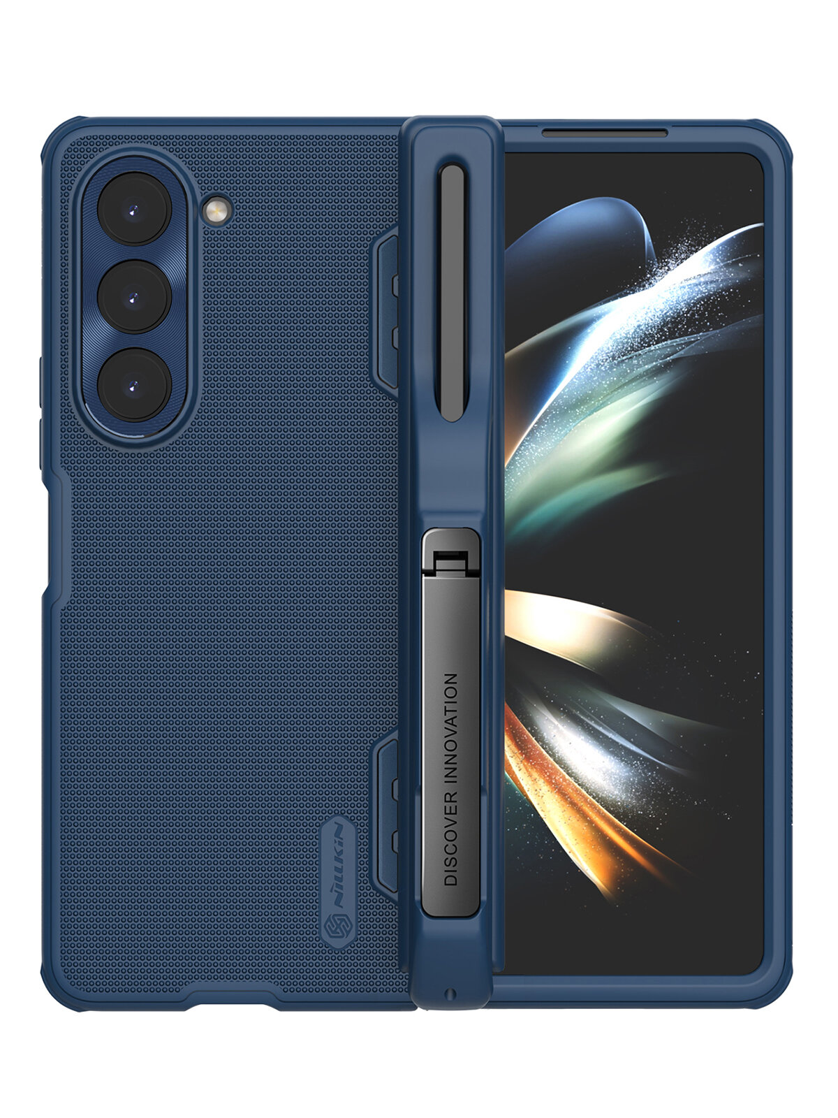 Двухкомпонентный чехол синего цвета на Samsung Galaxy Z Fold 5 от Nillkin, серия Super Frosted Shield Fold, в комплекте со съемным держателем для S Pen