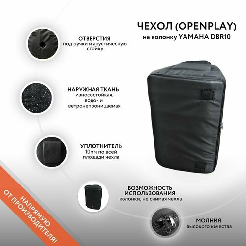 Чехол (openplay) подходит для всех видов модификаций данной колонки YAMAHA DBR10. Данный чехол изготовлен строго по корпусу колонки, учитывая все выпуклости, стороны и грани. Основная идея данного чехла – это использование колонки, не снимая чехла с неё.