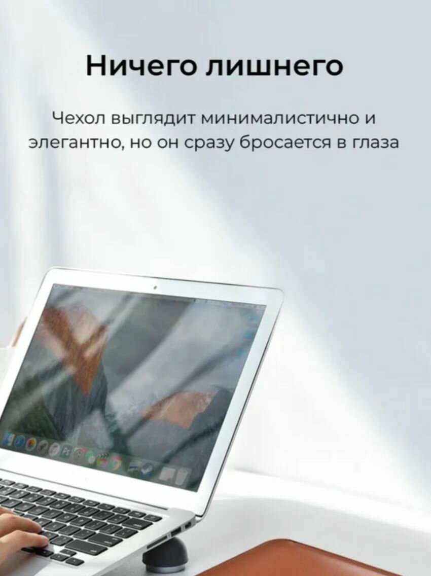 - Форма конверта - смотрится стильно и позволяет легко достать/убрать ноутбук в чехол