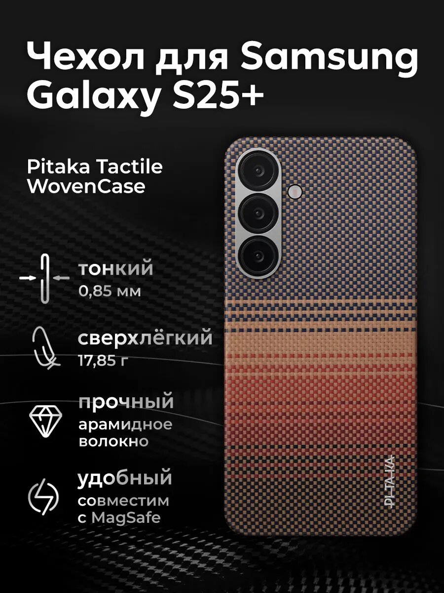 Чехол PITAKA Tactile Woven Case для Samsung S25 Plus с принтом закат (Sunset) - это сочетание стиля, функциональности и надежности.