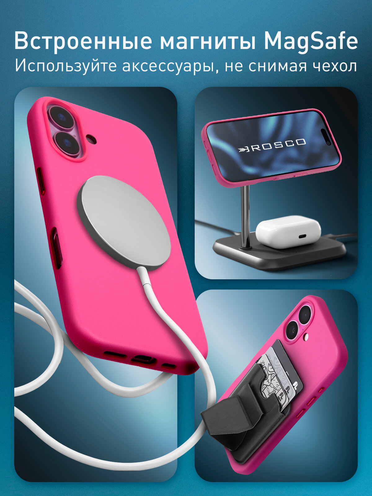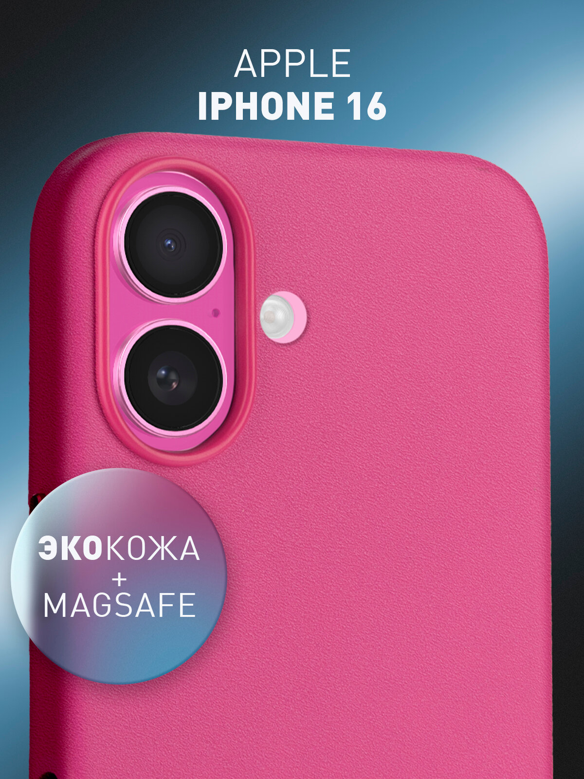 Чехол с MagSafe Rosco для Apple iPhone 16 (Айфон 16), защита камеры, экокожа, розовый: сравнение цен, характеристики, фото, актуальное наличие и цены.