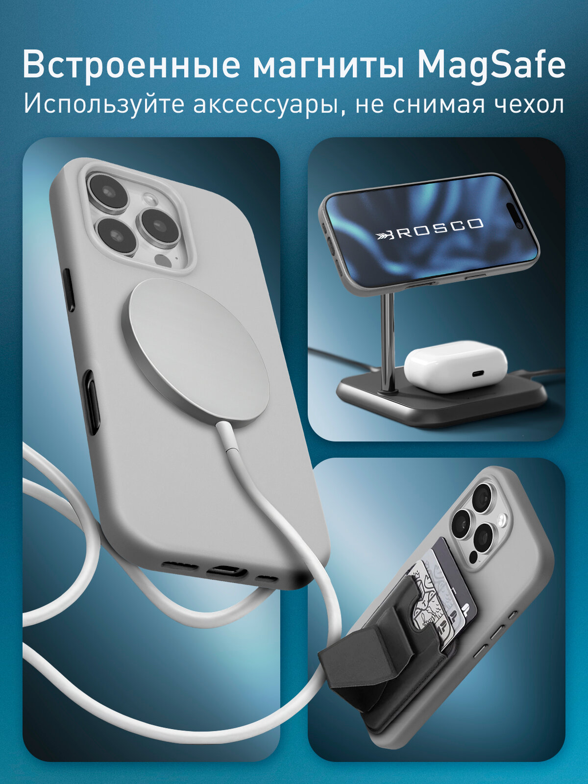 Чехол с MagSafe Rosco для Apple iPhone 16 Pro (Айфон 16 Про), защита камеры, экокожа, серый: сравнение цен, характеристики, фото, актуальное наличие и цены.