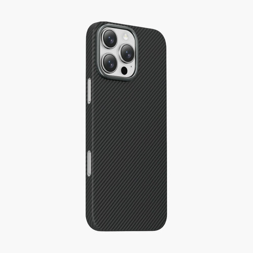 Чехол с MagSafe для iPhone 16 Pro Max KEVILAR-Чёрный – стильный и функциональный аксессуар для вашего смартфона. Изготовлен из высококачественных материалов, таких как арамид (кевлар), карбон и металл, что обеспечивает прочность и долговечность аксессуара. Ультралегкая конструкция чехла делает его удобным в использовании и предотвращает скольжение смартфона из рук.