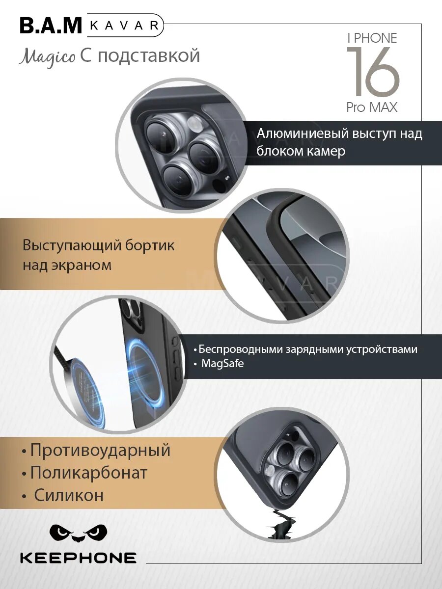 Чехол с подставкой Keephone, для iPhone 16 Pro Max, матовый, ударопрочный: сравнение цен, характеристики, фото, актуальное наличие и цены.
