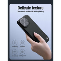 Оригинальный двухкомпонентный чехол с вставками из легкой искусственной кожи черного цвета от Nillkin серия CamShield Prop Leather Magnetic Case с откидной металлической крышкой для задней камеры и функцией поддержки магнитной беспроводной зарядки MagSafe (для зарядки необходимо использовать индукционный магнит MagSafe)! на смартфон Айфон 15 Про. Кожаный чехол CamShield Prop Leather Magnetic Case выполнен из легкой роскошной кожи с высококачественной и элегантной текстурой. Магнитная крышка объектива откидного типа для легкого открытия и закрытия не только защищает камеру вашего телефона, но и служит как держатель телефона. Защита на 360, легкий и тонкий дизайн. Крышка с вставкой из металла защищает камеру телефона от царапин и защищает вашу конфиденциальность. Обработано по передовой технологии. Хорошее ощущение прикосновения. Защита от отпечатков пальцев и масляных пятен. Чехол от Nillkin серии CamShield Prop Leather Magnetic Case разработан специально для iPhone 15 Pro