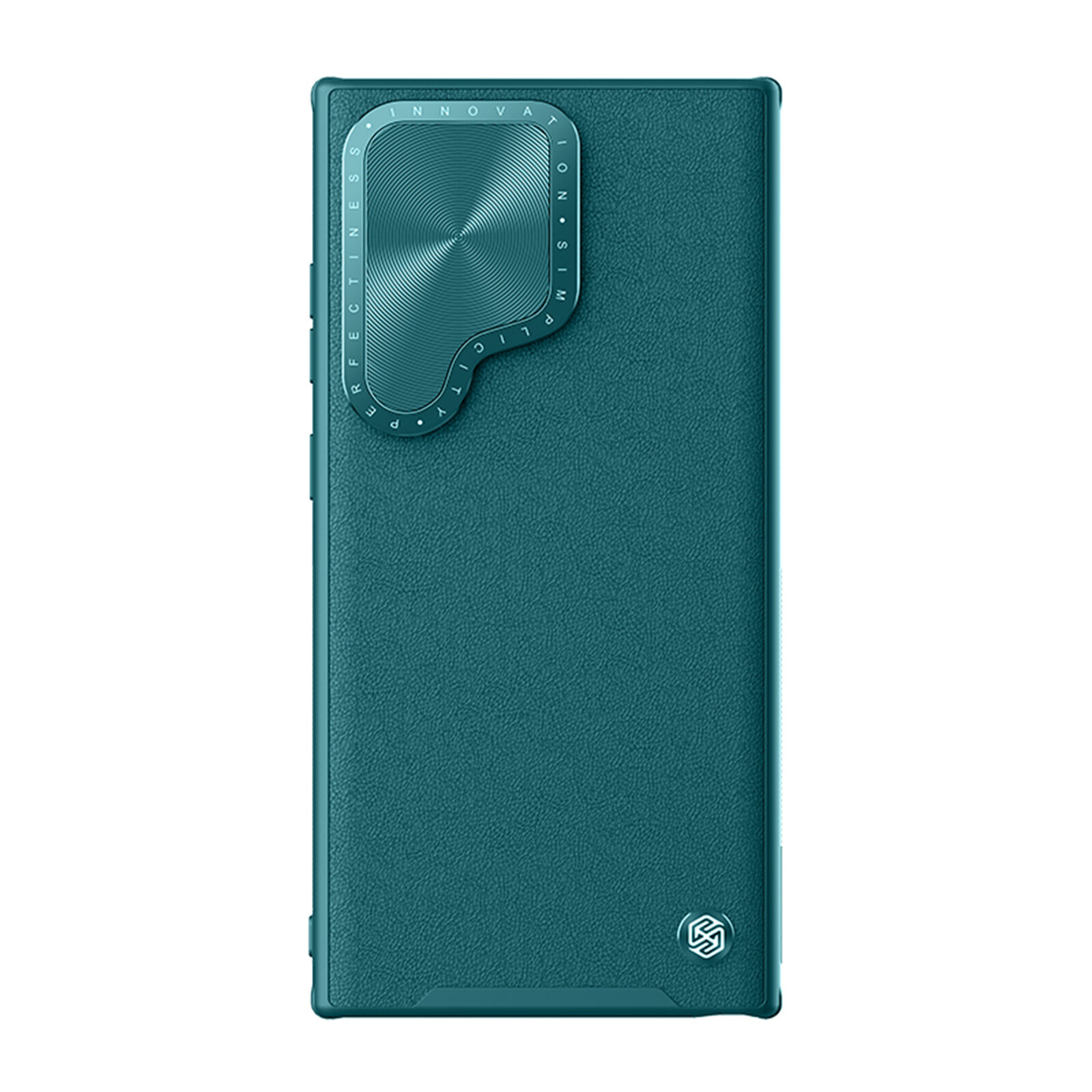 Чехол с вставками из кожи зеленого цвета (Exuberant Green) от Nillkin для Samsung Galaxy S24 Ultra, с откидной металлической крышкой для камеры, серия CamShield Prop Leather Case