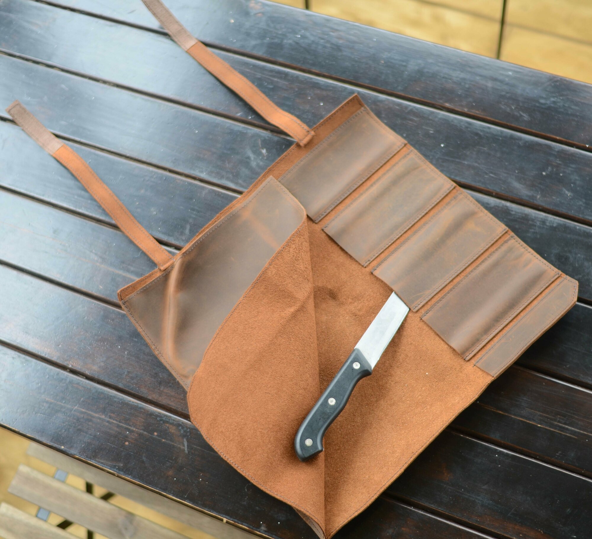 Скрутка — практичный пенал, который сворачивается в рулон. Это изделие используют для удобного ношения ножей, оно придаёт набору более эстетичного, завершённого вида. Сумка для ножей повара — не только вспомогательный атрибут, но и средство самовыражения. Скрутка удерживает ножи внутри конструкции, благодаря ей инструменты не теряются, не повреждают поверхность основной сумки. Неотъемлемая часть — фиксирующая застёжка. Без таких деталей пенал разматывается, инструменты теряются при переносе.