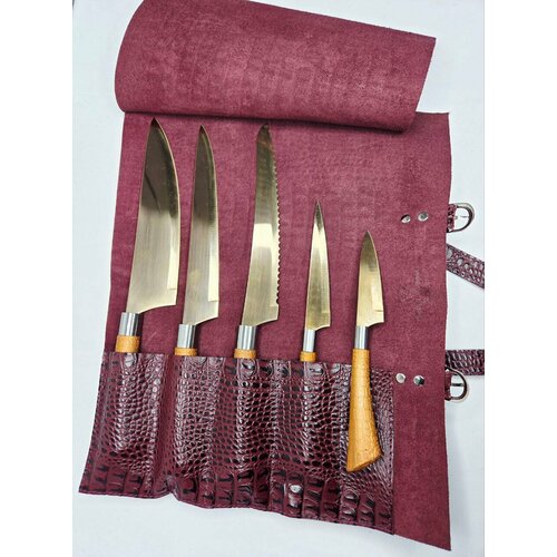 Защитный чехол из натуральной кожи для коллекции ножей кулинарного шефа имеет 6 отделений (карманов) для кухонных принадлежностей, поварских инструментов, кейс для складного ножичка. Надежный, качественный кожаный органайзер с ремешками используют не только повара, но и туристы, охотники, рыболовы. В нем можно хранить предметы на природе, на даче, в гараже и просто дома на кухне. Практичная сумка скрутка, как пенал, очень удобна в путешествии, в туризме, в походе для переноски туристических, походных вещей, она вместительная, не занимает много места. Такой футляр на ремнях могут применять в работе парикмахеры для парикмахерских ножниц, расчесок, машинок и других профессиональных аксессуаров. Сумка-скрутка ручной выделки – это отличный подарок на 23 февраля, 8 марта, день рождения специалистам своего дела, папе и маме, дедушке и бабушке, мужу и жене, сыну и дочери, брату и сестре, другу и коллеге. Внимание! Не пугайтесь, первое время может осыпаться бахтарма — это нижняя поверхность выделанной кожи животного.
