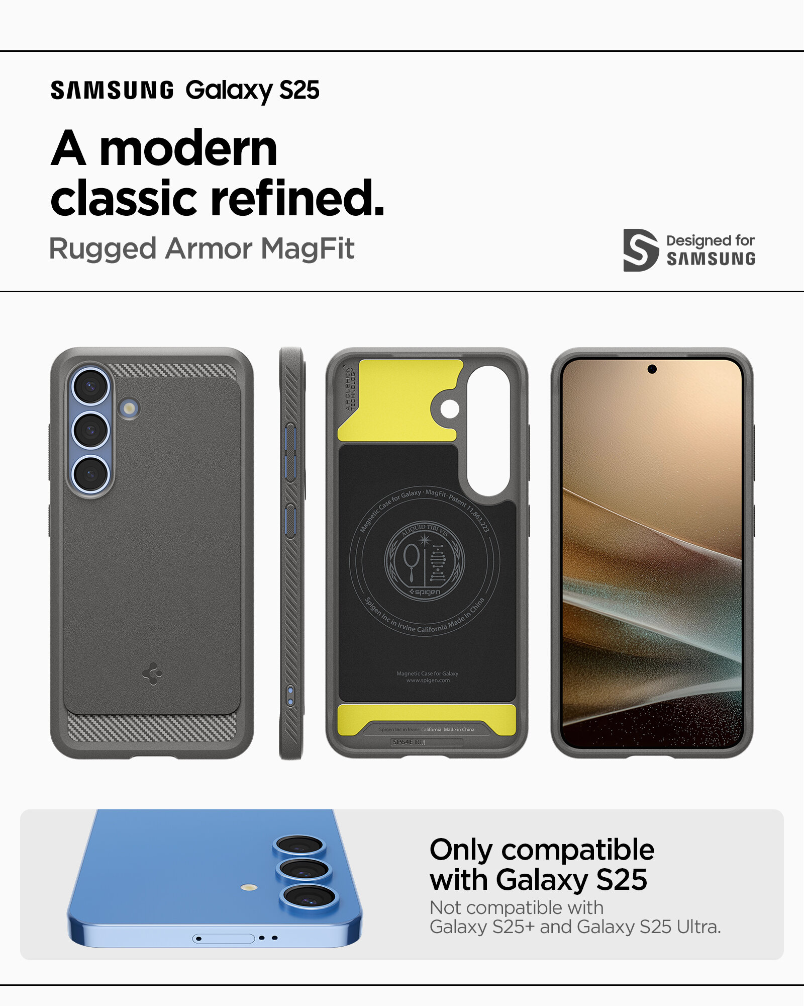 Купить Чехол Spigen на Samsung Galaxy S25 (ACS08999) Rugged Armor MagSafe / Спиген для Галакси С25 накладка с MagSafe, противоударный, с защитой камеры, серый с доставкой по всей России. Чехол Spigen на Samsung Galaxy S25 (ACS08999) Rugged Armor MagSafe / Спиген для Галакси С25 накладка с MagSafe, противоударный, с защитой камеры, серый: сравнение цен, характеристики, фото, актуальное наличие и цены.