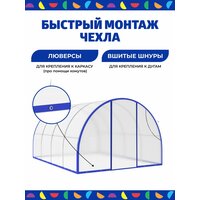Армированная пленка отлично пропускает свет, обладает хорошей изоляцией, позволяет растениям не пересыхать. Имеет защиту от УФ-излучения. Тент для парника герметично сшит, поэтому отлично держит тепло и защищает рассаду от непогоды. Толщина 200 мкм обеспечивает эксплуатацию чехла в течение 3-7 лет. Чехол полностью готов к эксплуатации, Вам остается только накинуть его на каркас и зафиксировать с помощью шнуров и хомутов. Также легко его и снять на зиму. Отличная альтернатива теплицы из поликарбоната!