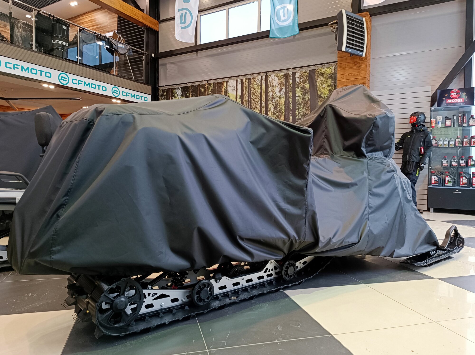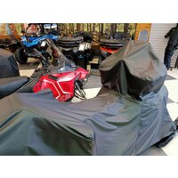 Чехол изготовлен из высококачественного влагостойкого материала с использованием качественной фурнитуры. Это обеспечивает долговечность и надежность чехла, а также защиту снегохода от влаги и пыли.
