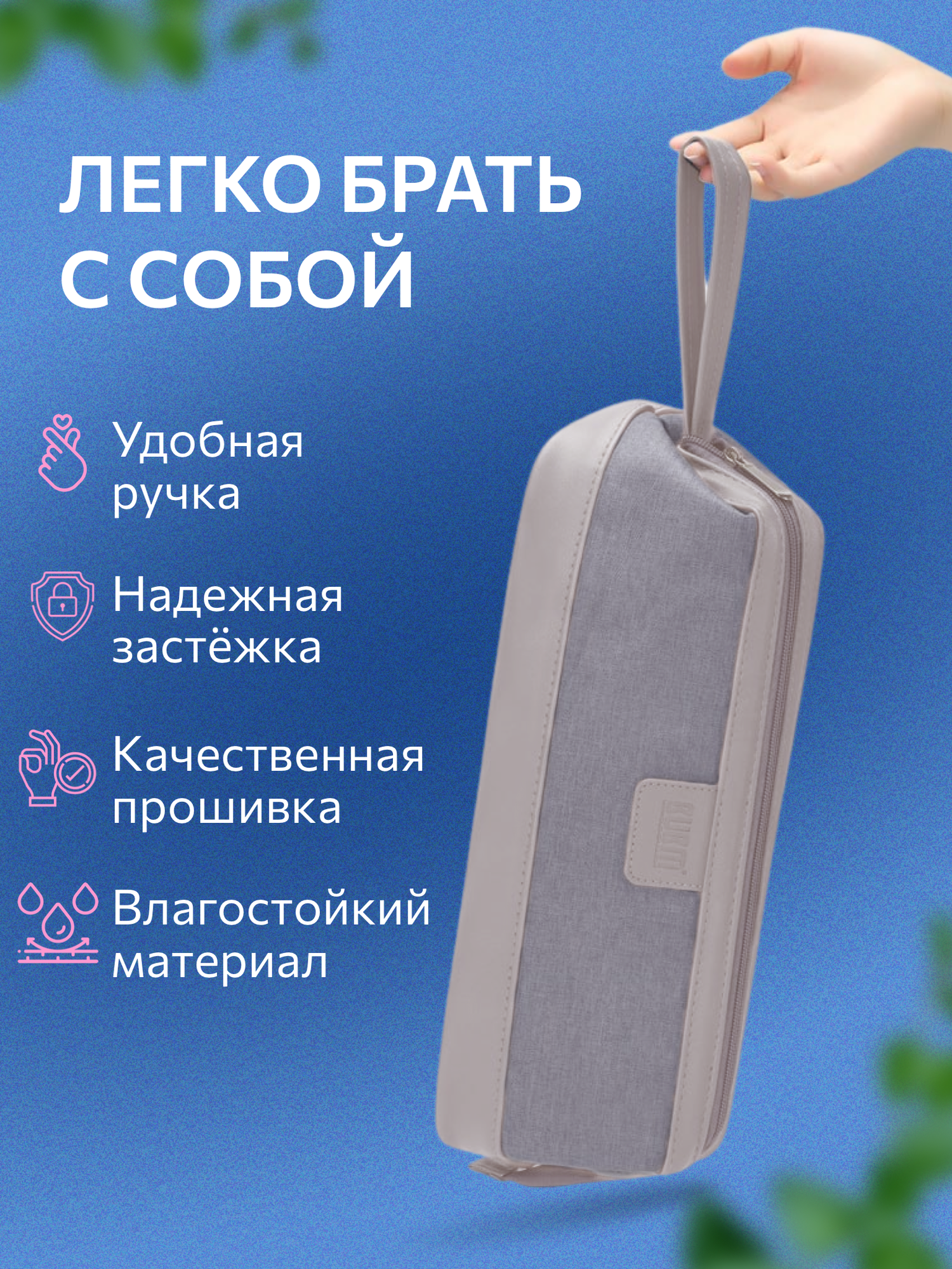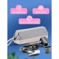 Чехол для фена tuvio dyson airwrap styler / dyson hair dryer / dyson hair straightener идеально подойдет для хранения и транспортировки женской техники для волос. Также наша дорожная косметичка отлично подойдет для фена-стайлера Bork и Dyson Airstrait. Чехол защищает фен дайсон от пыли и влаги во время хранения или транспортировки, а также позволяет держать стайлер и утюжок всегда под рукой в дорогу или для путешествий. Сумка для фена многофункциональна, подходит для разных устройств. Органайзер можно использовать и как косметичку. Косметичка изготовлена из ткани и искусственной кожи, отлично защищает фен и аксессуары с насадками. Внутренний слой из флиса защищает приборы от царапин. Просторное отделение вмещает несколько предметов и насадок для фена Дайсон и аналогов. Стайлеры, плойки и другие аксессуары для волос разных брендов легко помещаются в органайзере. Застежка-молния открывает чехол широко, что облегчает складывание и извлечение предметов. Жесткий кант сохраняет форму, несессер можно подвесить за ремень, удобно брать с собой на отдых или в дорогу. В чехле поместятся ваши инструменты, заколки, шпильки. Изделие идеально для путешествий, деловых поездок и домашнего хранения. Чехол не подвержен износу, выполнен из прочного влагостойкого материала. Кейс можно использовать для парикмахерских инструментов, в качестве органайзера, сумочки. Несмотря на компактный размер, в нем помещается весь набор насадок для фена и аксессуаров с насадками для разных типов волос. Отличный подарок маме, подруге, дочери, сестре.